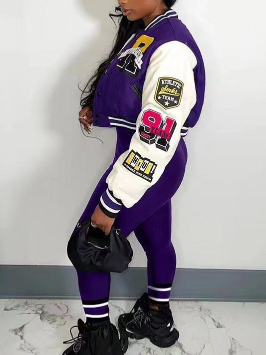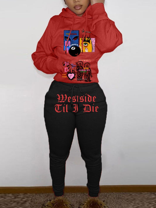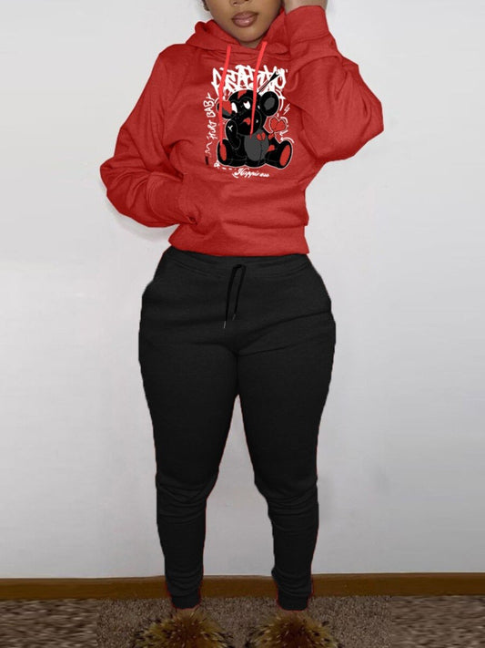 Letter Print Kangaroo Pocket Long Sleeve Hooded Tracksuit