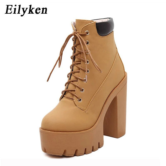 Eilyken Platform Lace Up Thick Heel Equestrian Boots