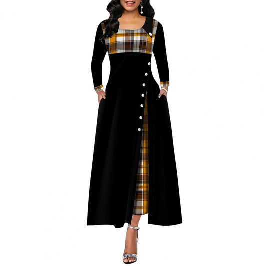 Contrast Colors O Neck Plaid Patchwork Dress
