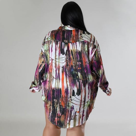 Plus Size Tie Dye Print Loose Oblique Irregular Two Piece Set