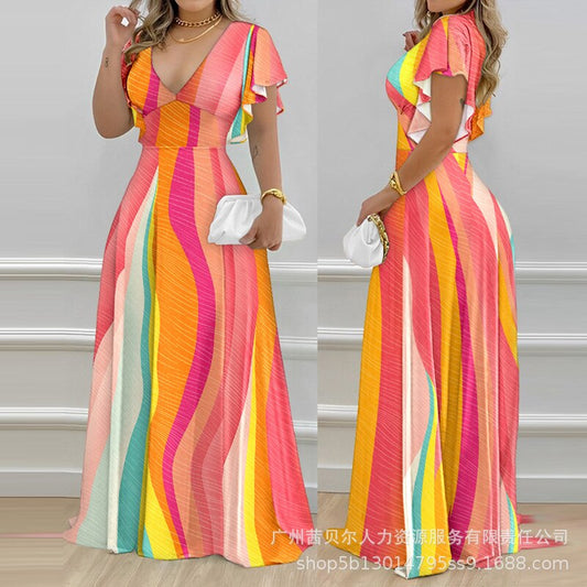 Sleeveless Round Neck Gradient Print Ruched Tank Dress