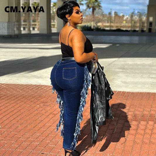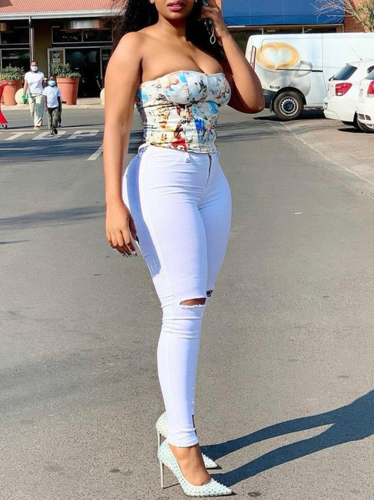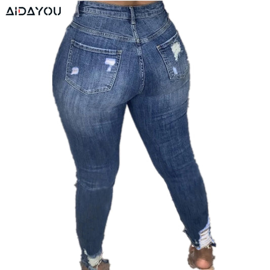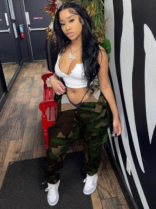 Plus Size Streetwear Ripped Skinny Camouflage Cutoff Jeans