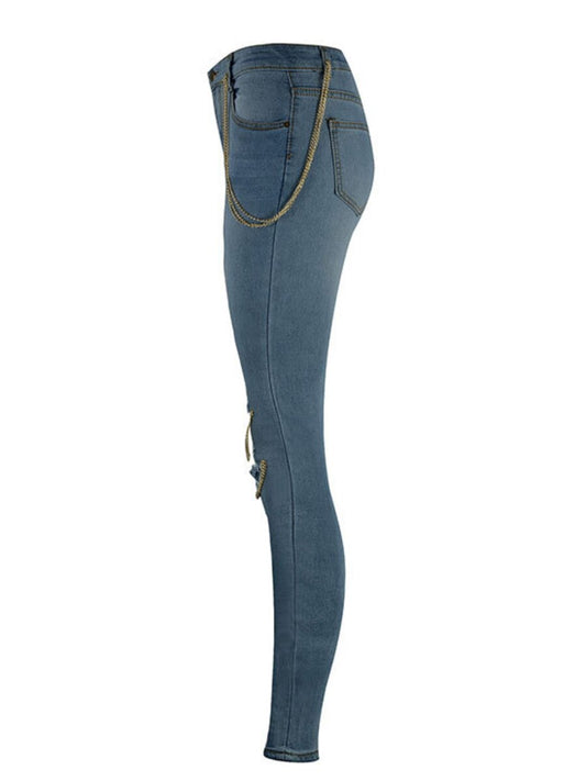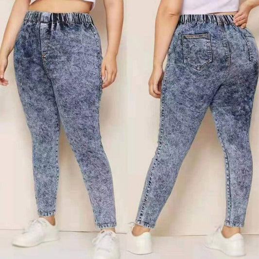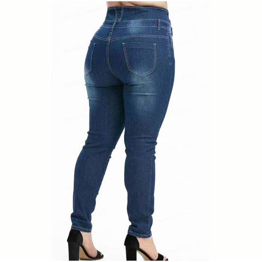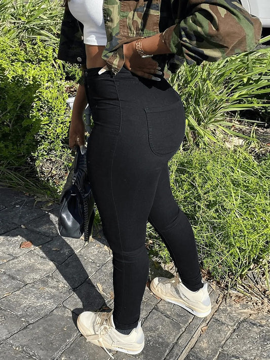 Plus Size Lace Ruffles Pocket Low Rise Jeans