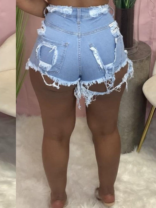 Mid Waist High Stretchy Ripped Baby Denim Shorts