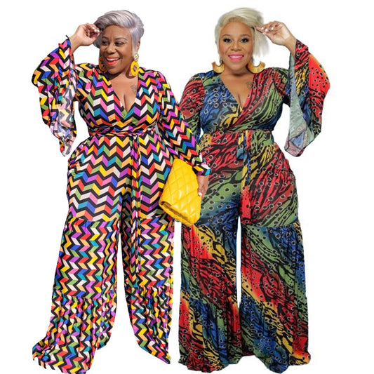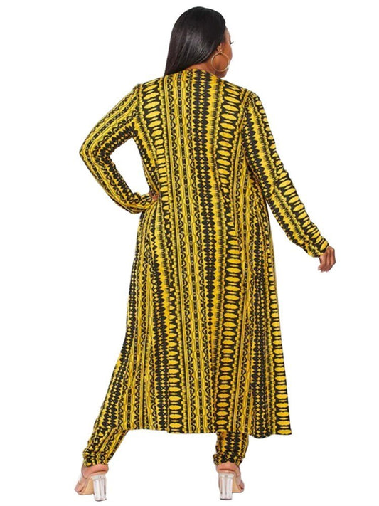 Plus Size Long Tops Pants Suit With Tank Autumn Print