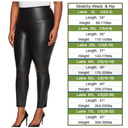 Plus Size Leather Super Stretchy Spandex Tummy Control Oversized Pants