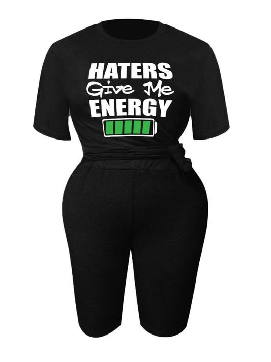 Plus Size Haters Give Me Energy Letter Print Shorts Set