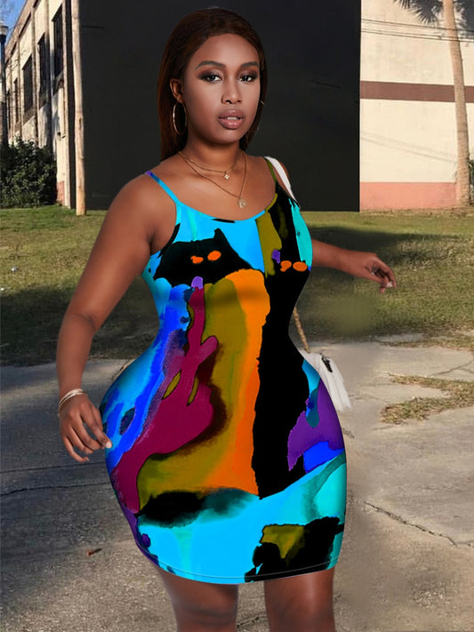Plus Size Mixed Print Bodycon Cami Dress