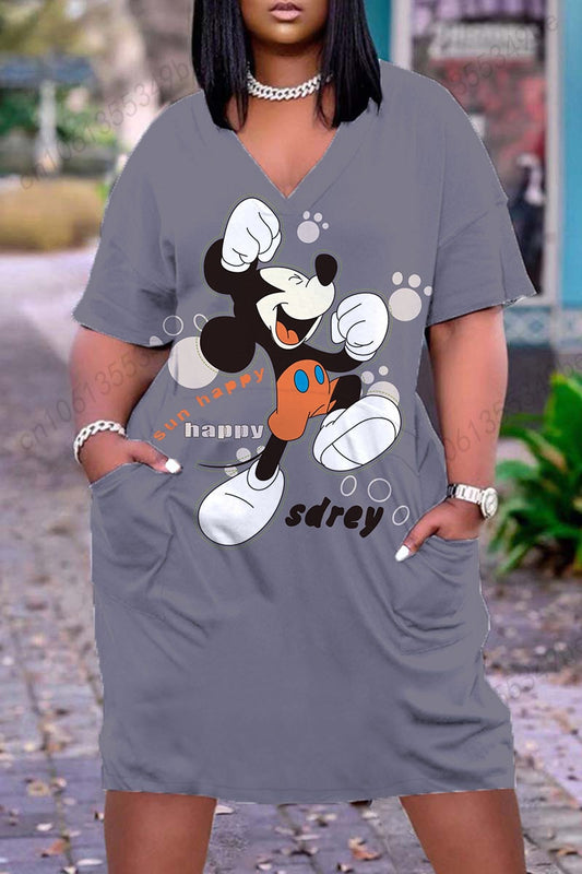 Sleeveless V-neck Loose Plus Size Casual Face Print Dress