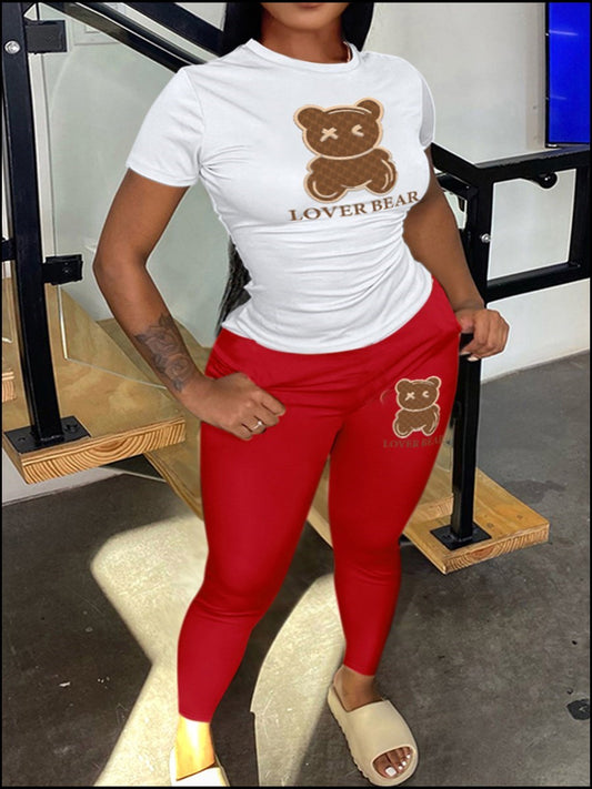 Plus Size Two Piece Mixed Letter Print Pants Set