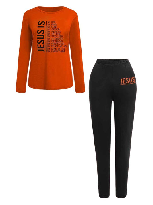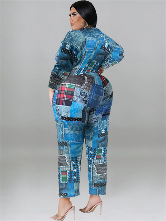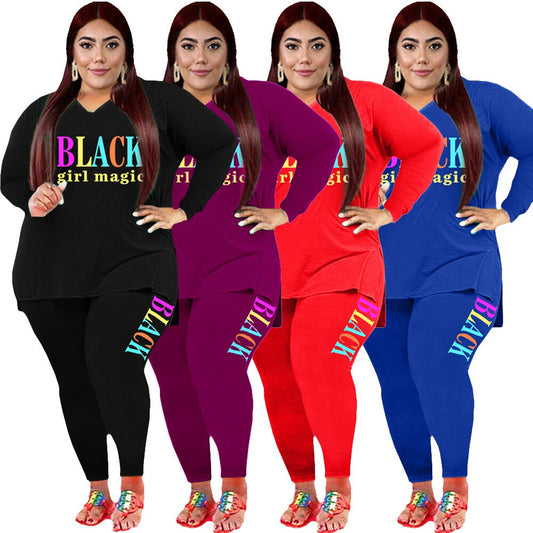 Plus Size 2 Piece Sexy Letter Print Long Sleeve Skinny Pants Set