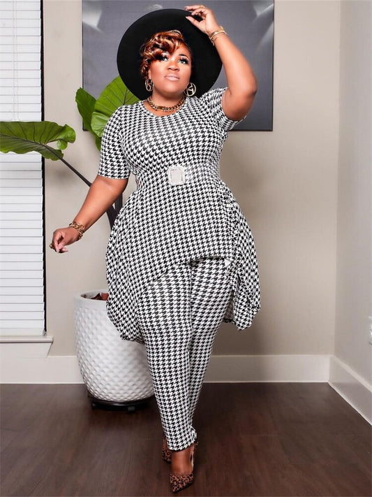 Plus Size Two Piece Short Sleeve O-Neck Tee with Pencil Shorts Suit
