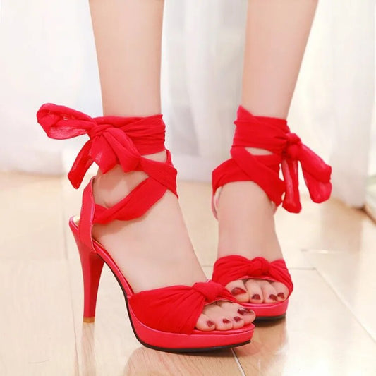Soft Leather Ribboned Lace Up High Heel
