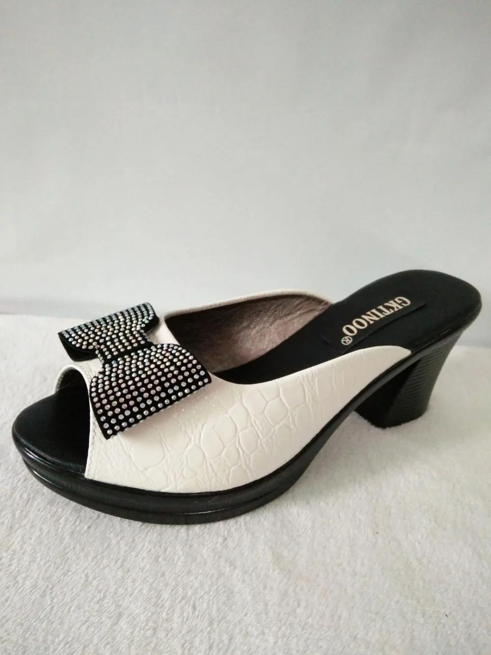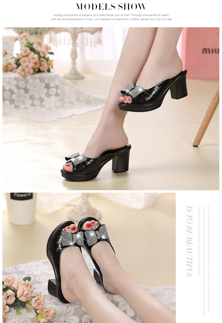 Make a bold statement wearing these luxurious leather rhinestone high-heeled block color open toe heels. Crafted with comfort and style in mind, these shoes are sure to elevate any look. Perfect for special occasions, nights out, or everyday glamour.