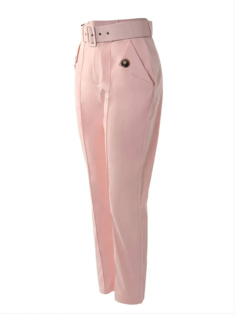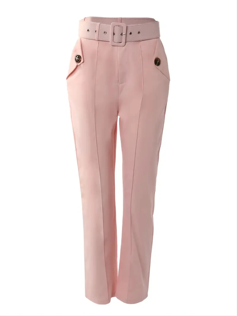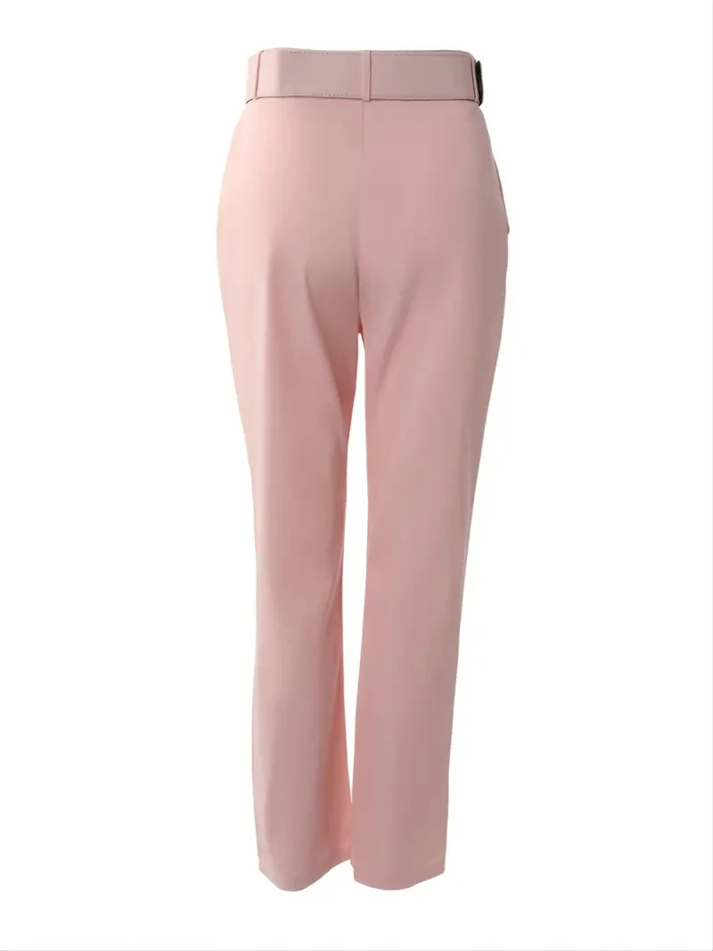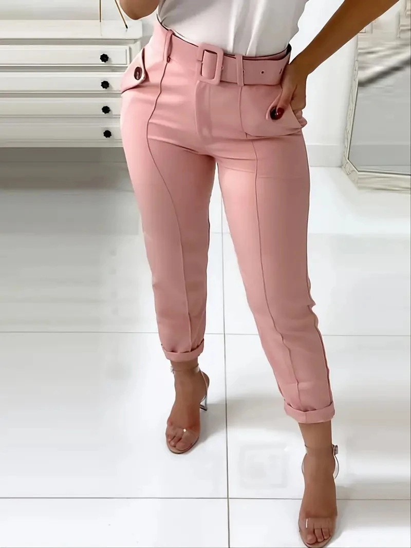 Solid Color High Waist Casual Pencil Skinny Straight Trousers with Pocket