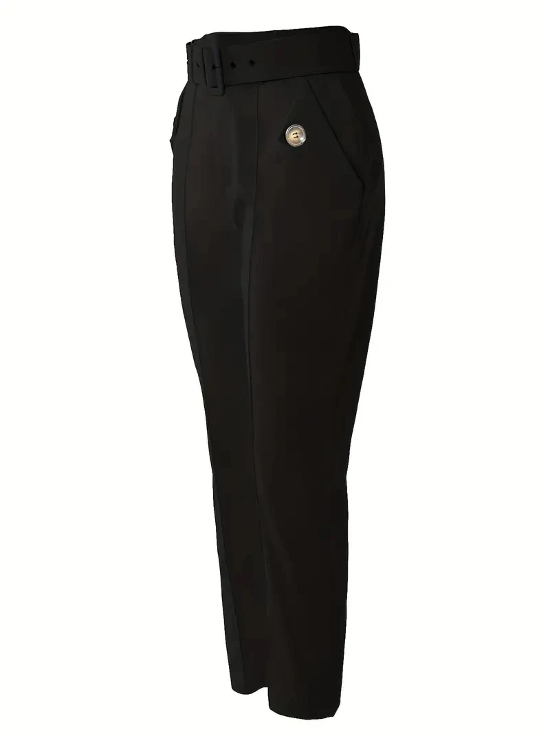 These Solid Color High Waist Casual Pencil Skinny Straight Trousers with Pocket offer a flattering silhouette with ultimate comfort. Crafted from a soft, lightweight fabric blend, they feature a high waist with functional pockets for practicality. Perfect for casual and formal occasions.