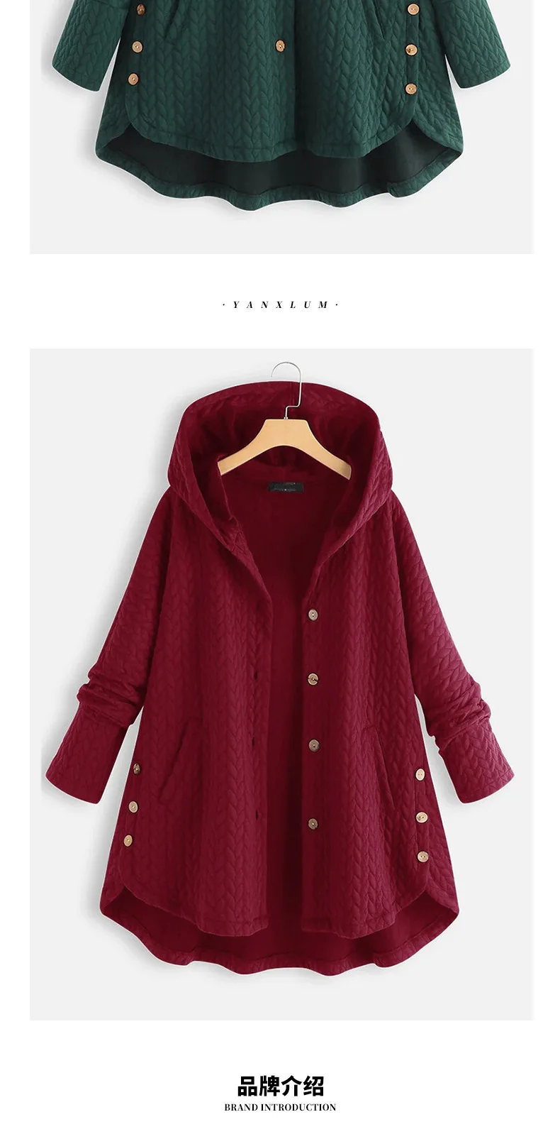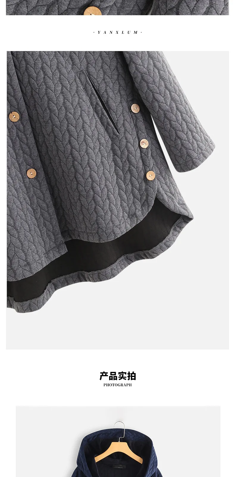 Plus Size Loose Cotton Hooded Mid-length Coat