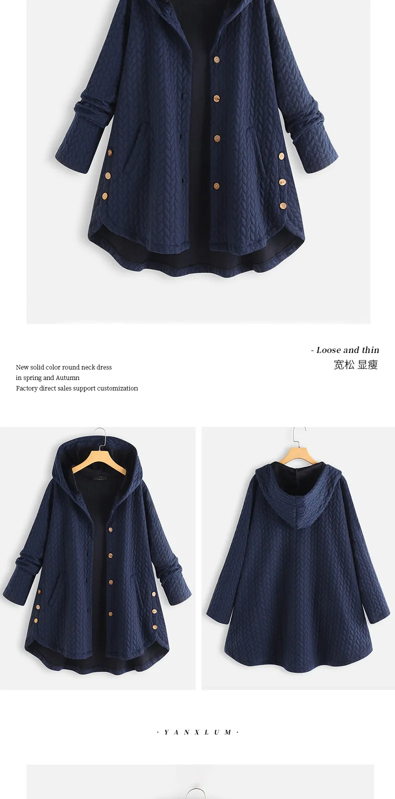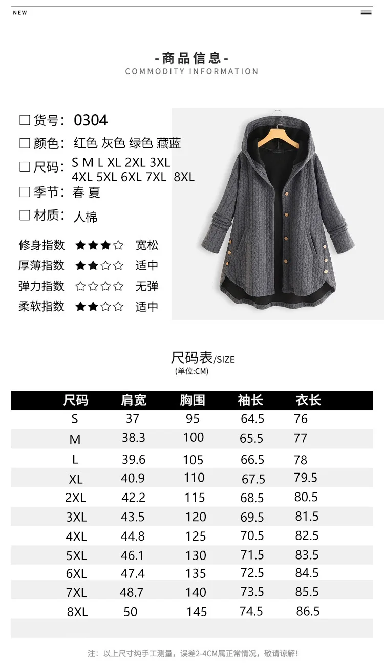 This Plus Size Loose Cotton Hooded Mid-length Coat is perfect for navigating chilly weather with ease. Made from lightweight cotton and featuring a long, loose design, this coat will keep you warm and comfortable without compromising on style.