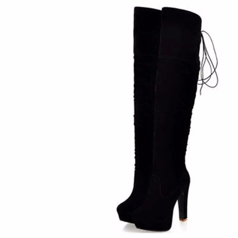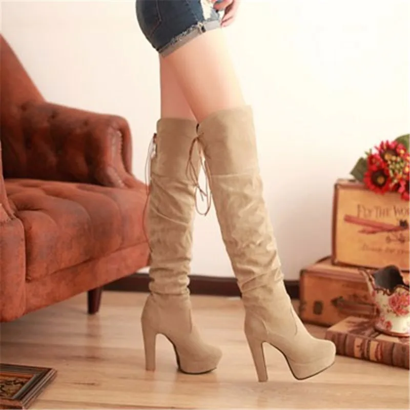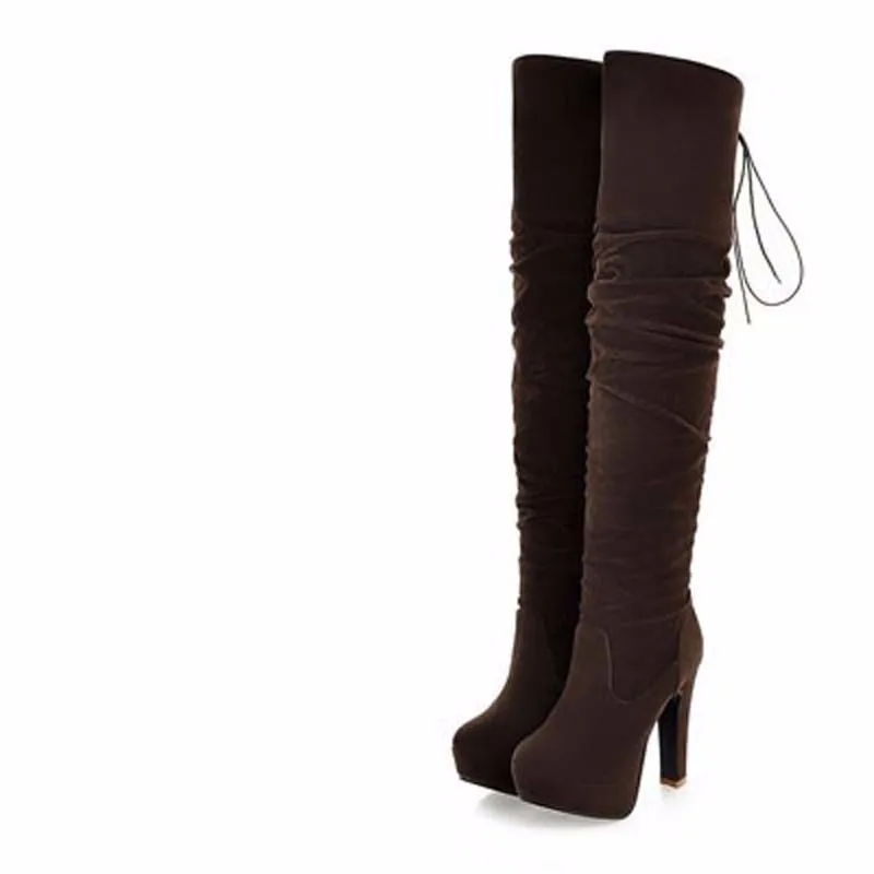 ENMAYER Over-the-Knee Flock Tasseled Round Toe Boots