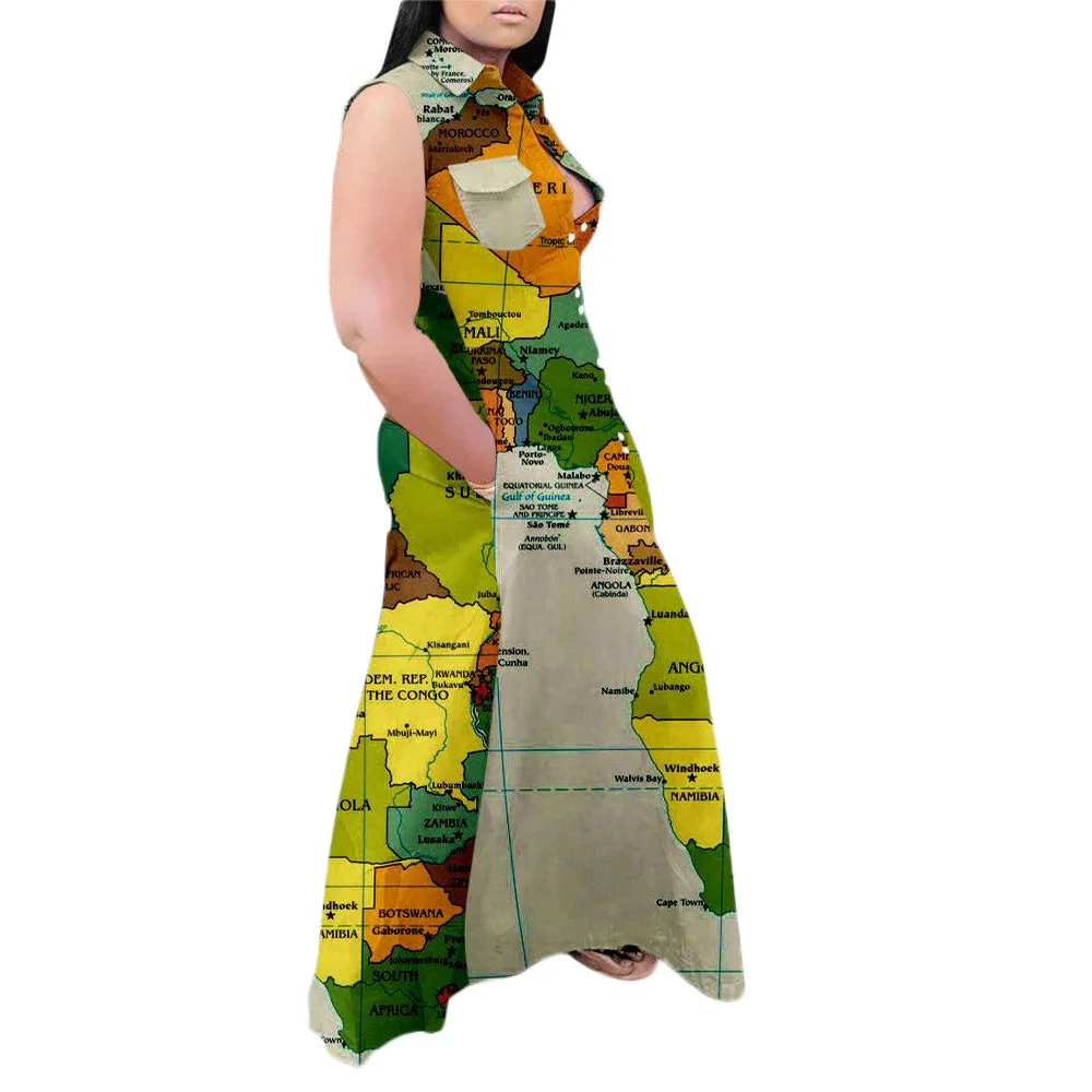 This Plus Size Casual Map Printing Sleeveless Maxi Dress Women is the perfect addition to your summer wardrobe. Crafted with lightweight and breathable materials, it will keep you cool and comfortable all day long. An allover map printing pattern adds a stylish touch to this maxi dress, making it a great option for any occasion. With its plus size design, it's sure to fit and flatter your curves.