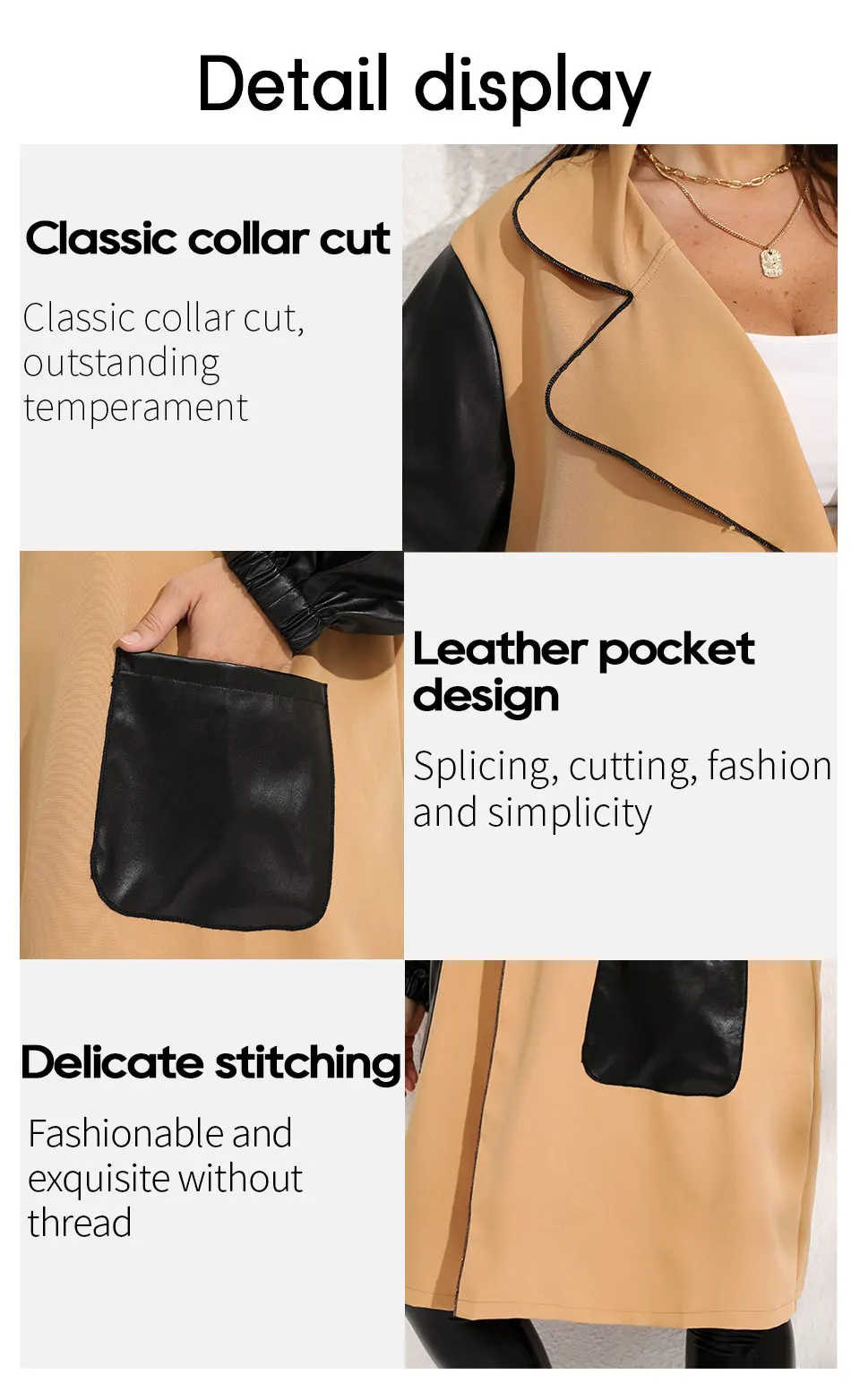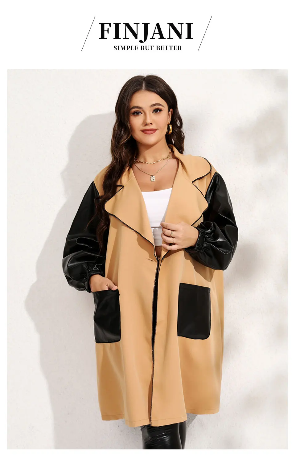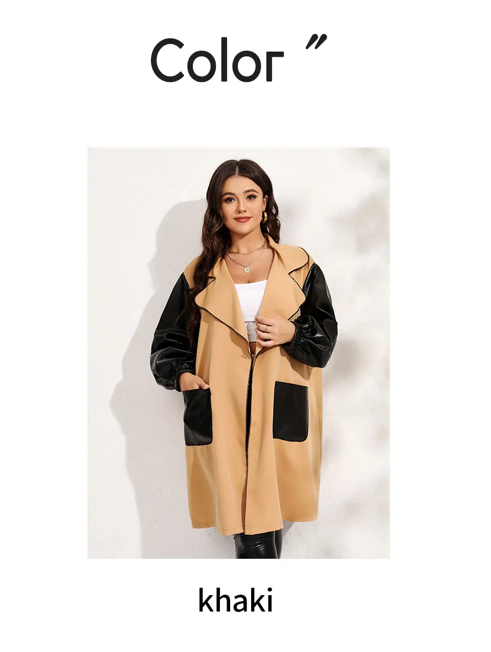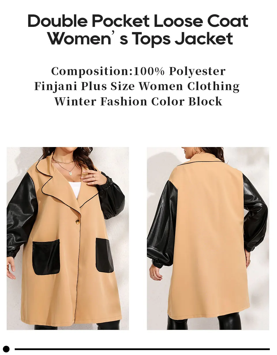 Plus Size Winter Color Block Double Pocket Loose Coat
