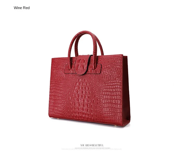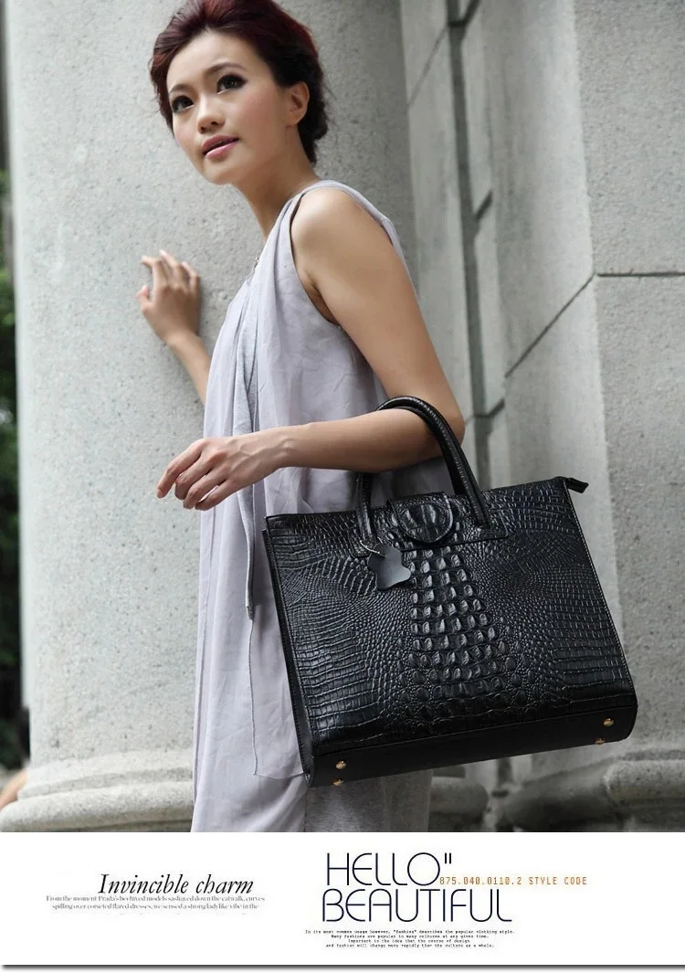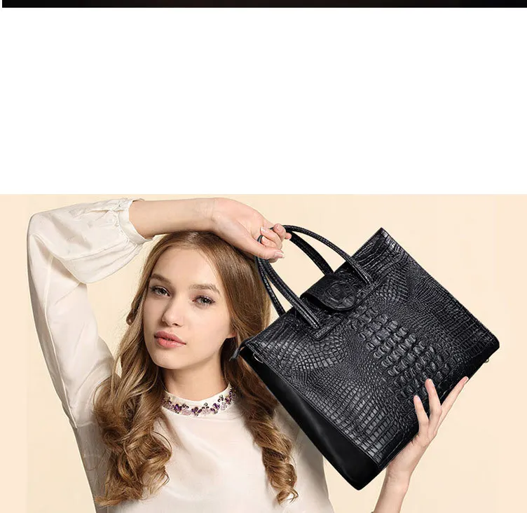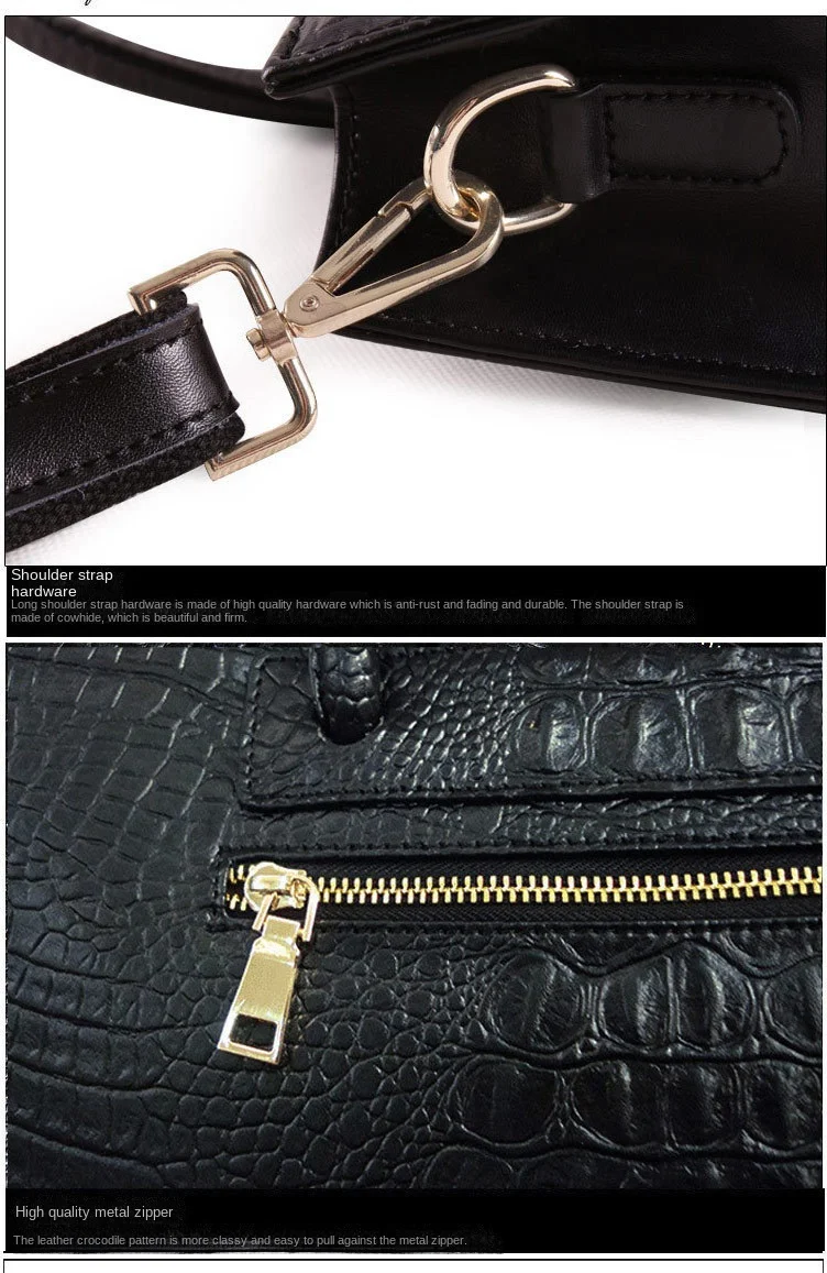 Large Capacity Crocodile Print Leather Shoulder Bag