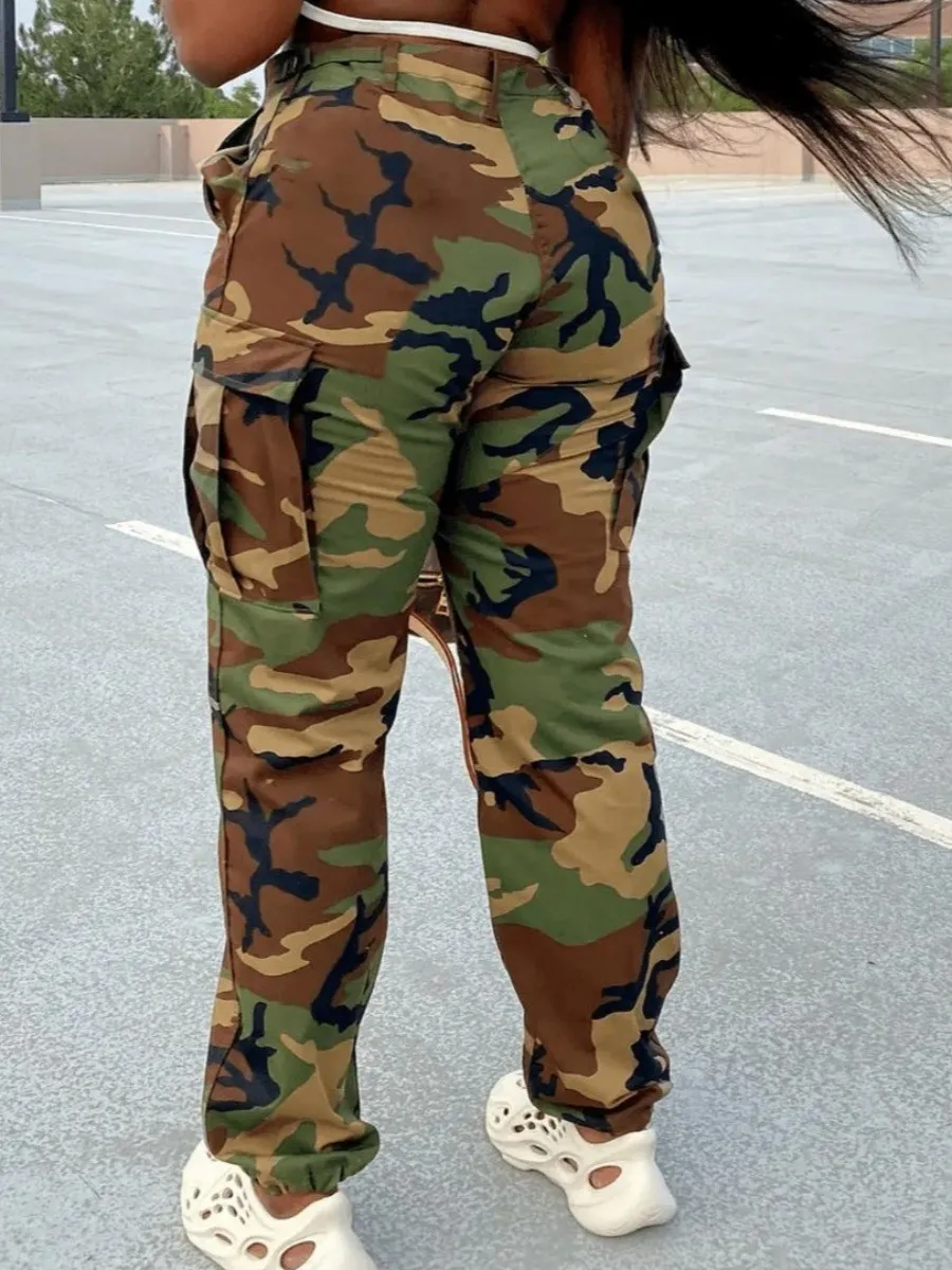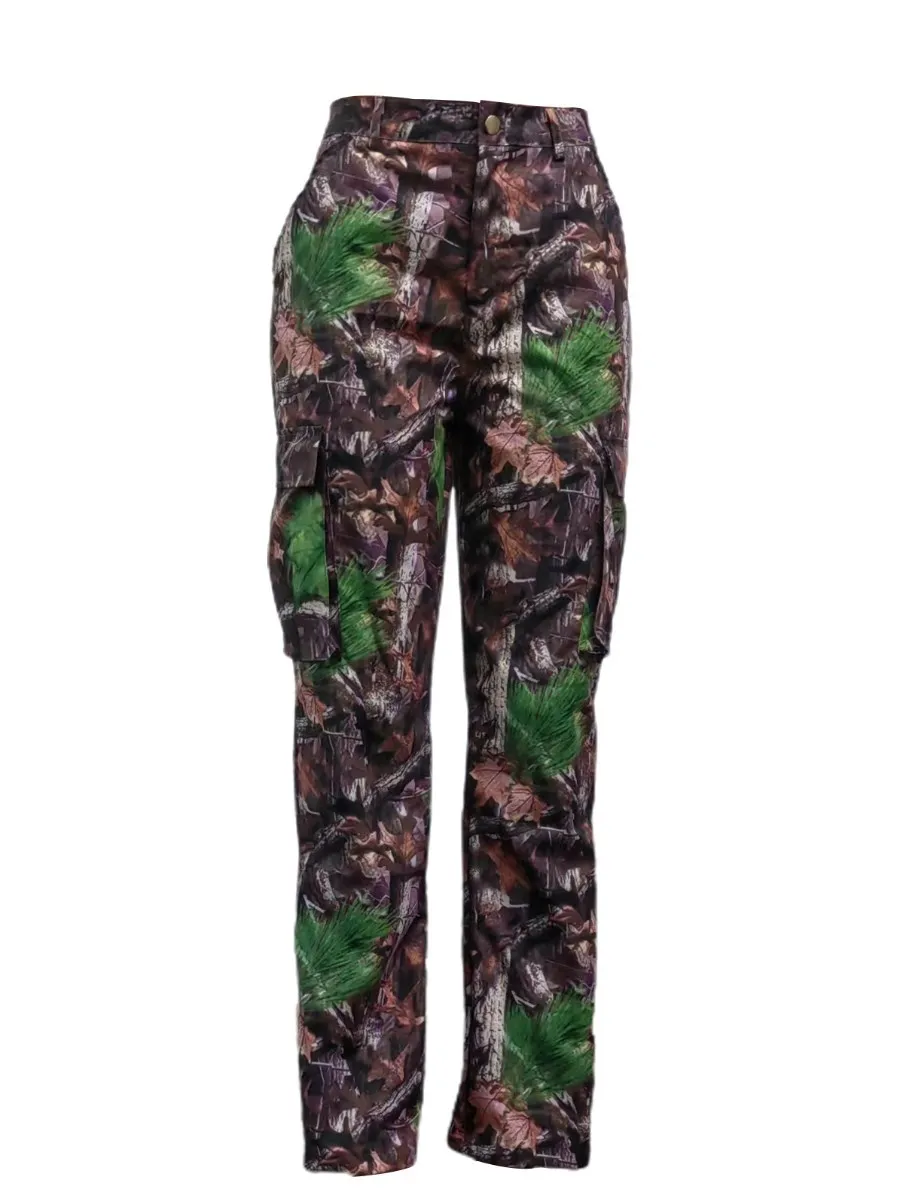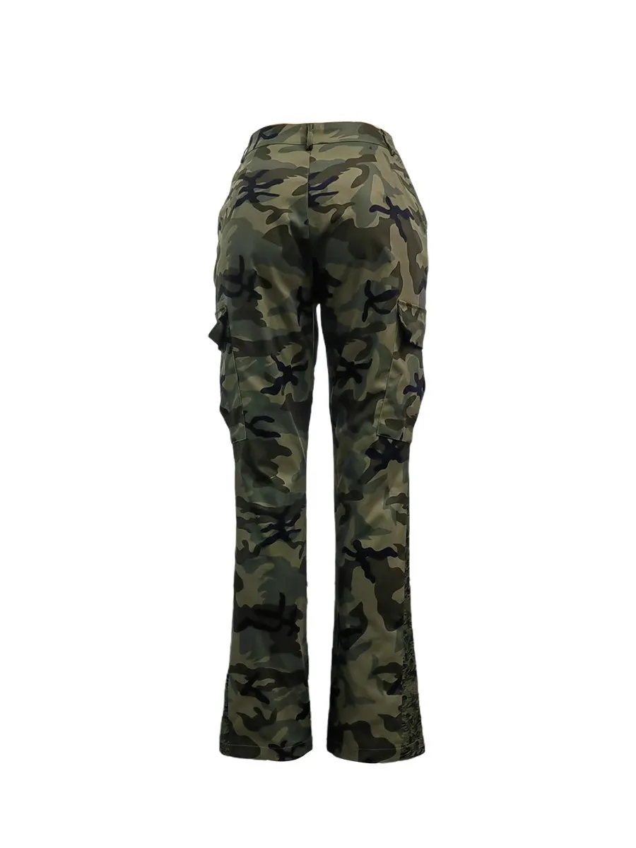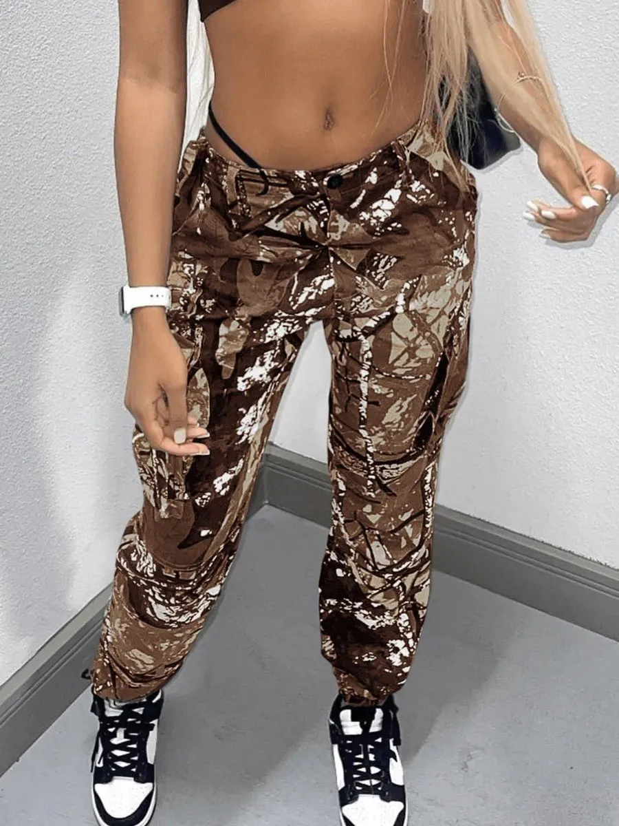 Camo Print Side Pocket Cargo Camouflage Pants