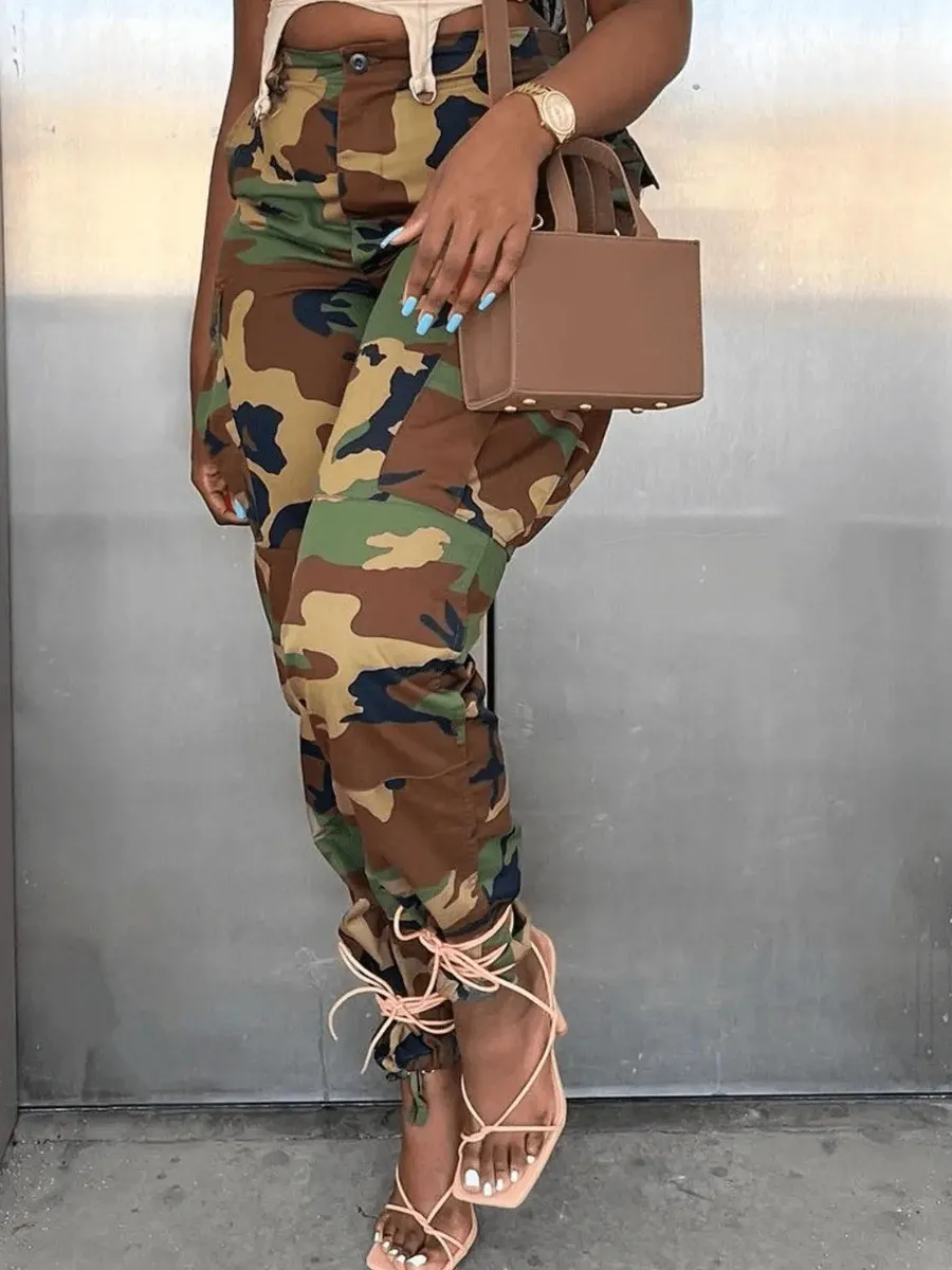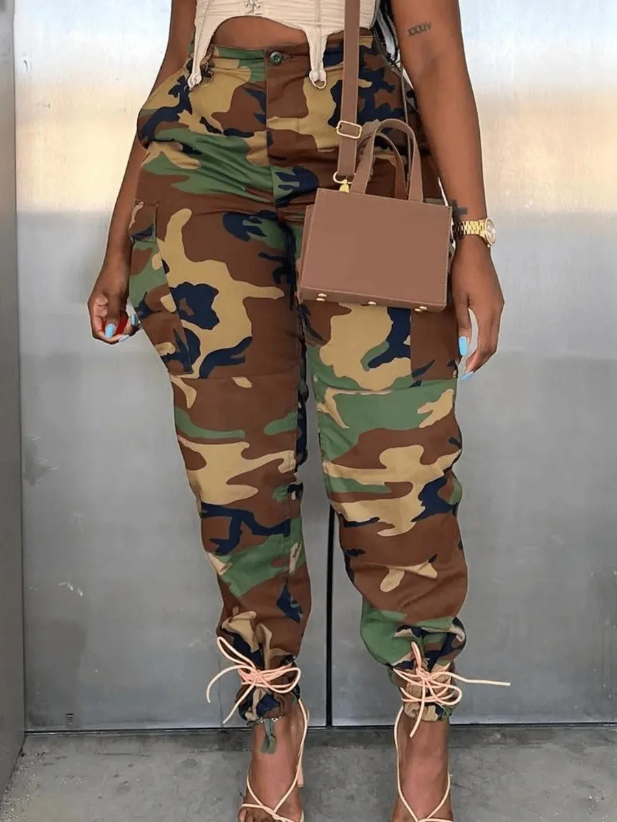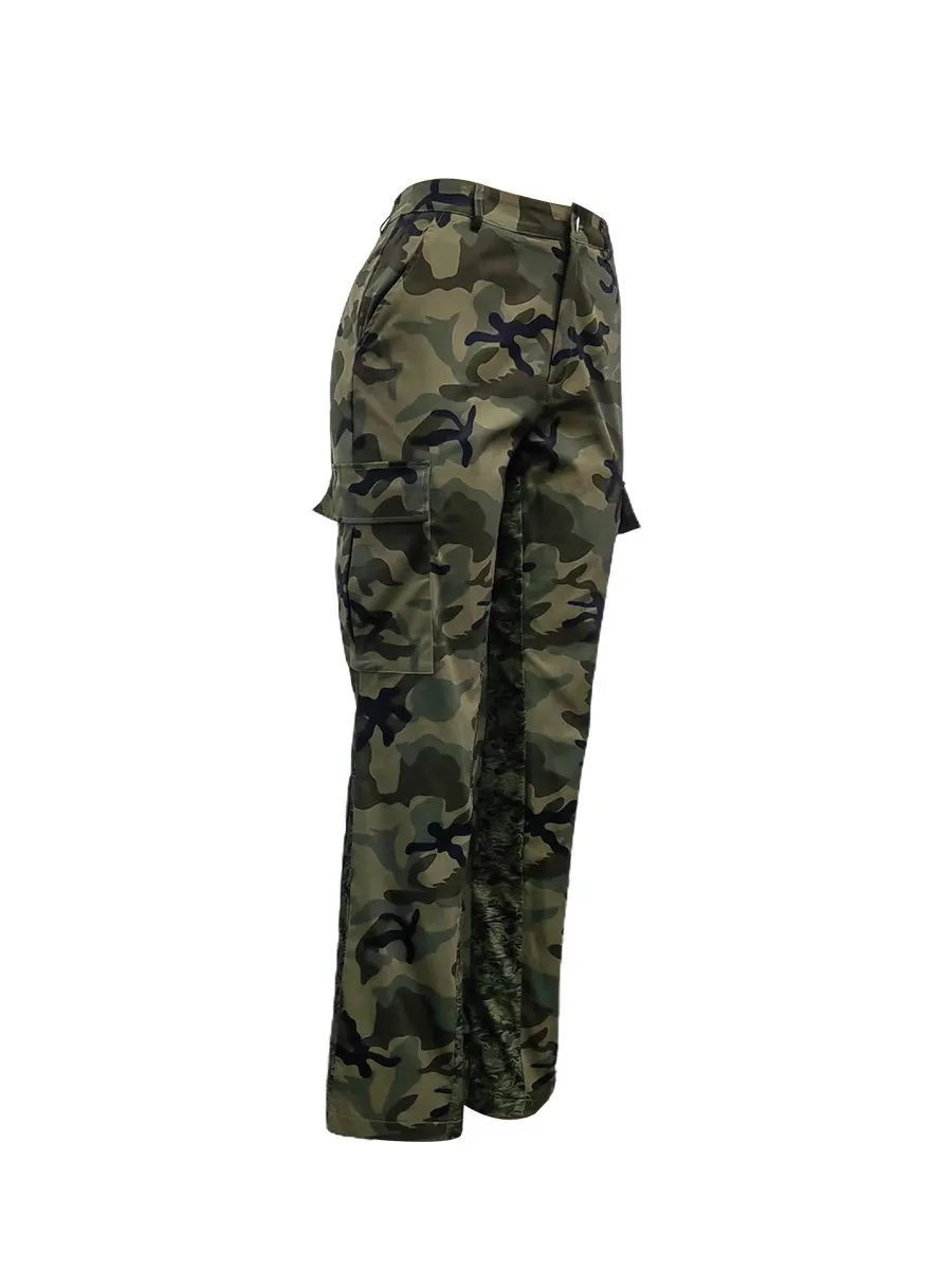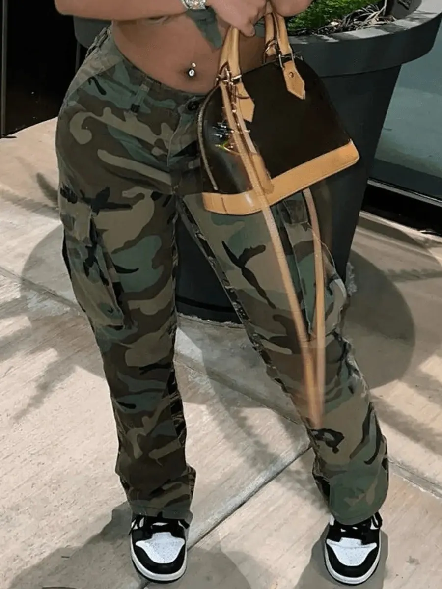 Camo Print Side Pocket Cargo Camouflage Pants