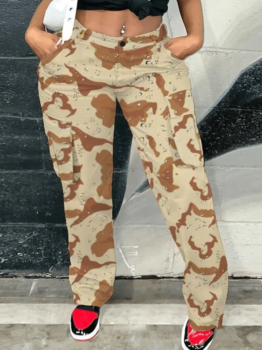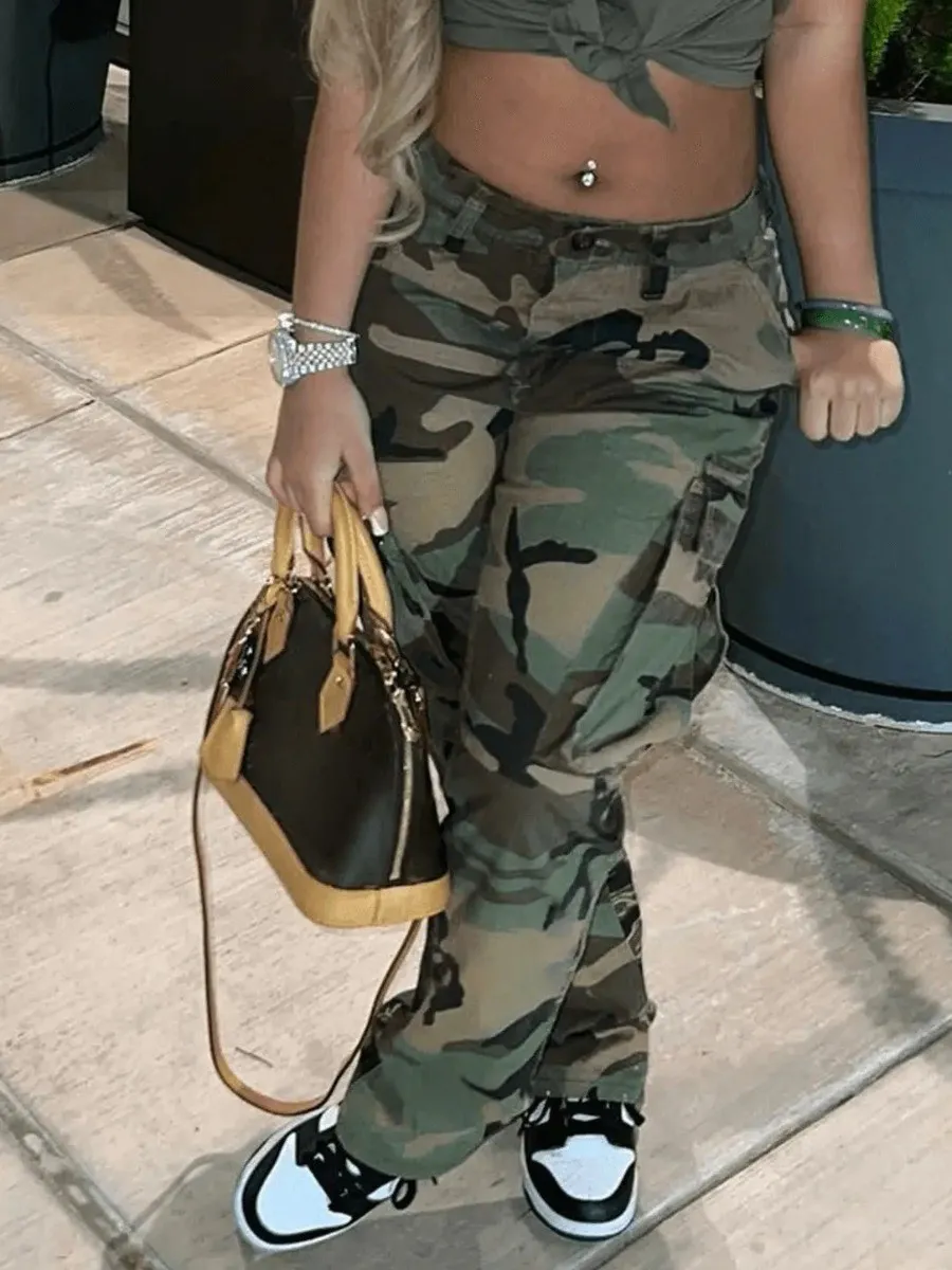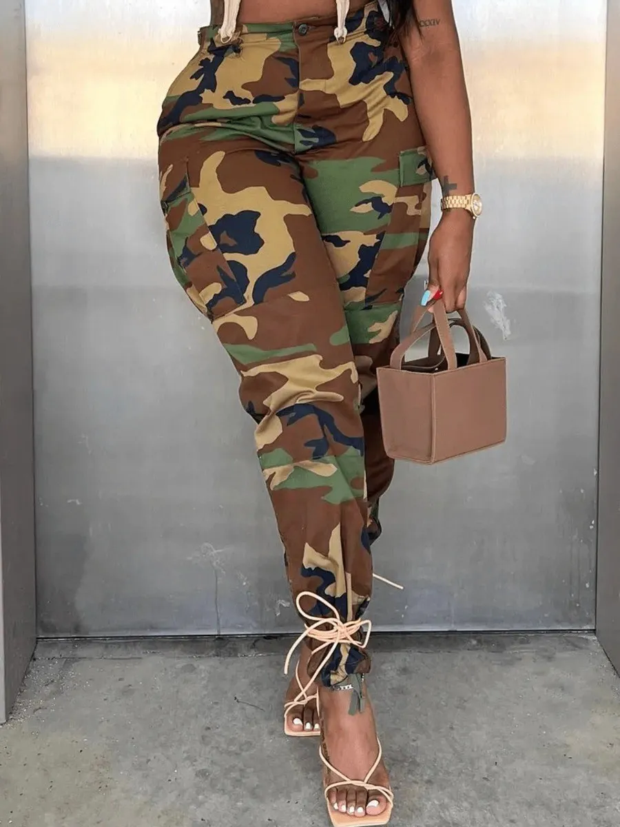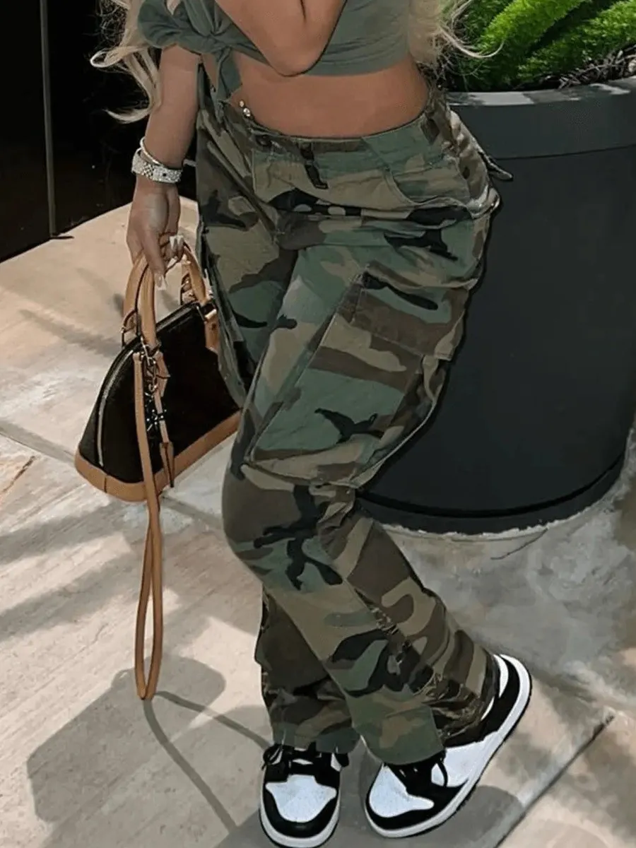 Camo Print Side Pocket Cargo Camouflage Pants