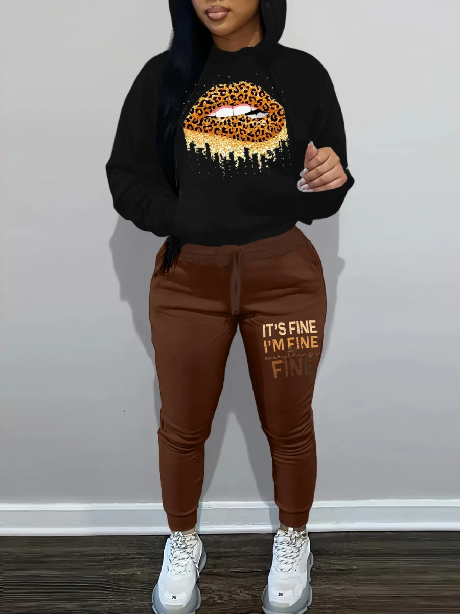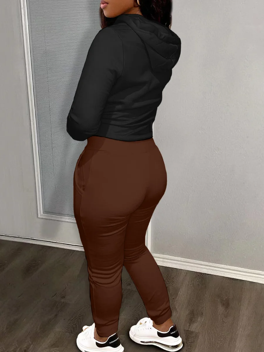 Letter Print Kangaroo Pocket Tracksuit