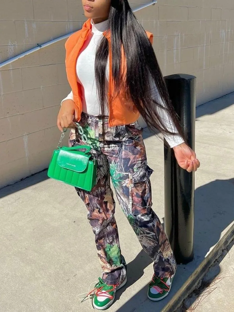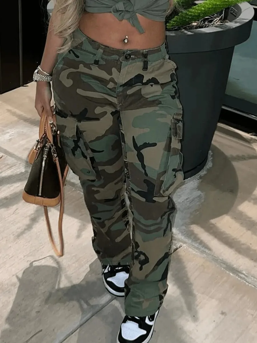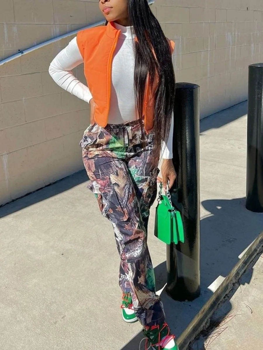 Mid Waist Print Cargo Pants