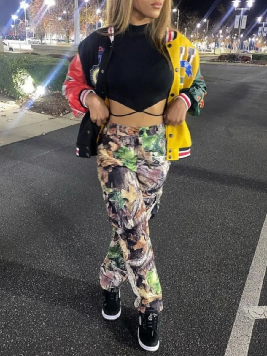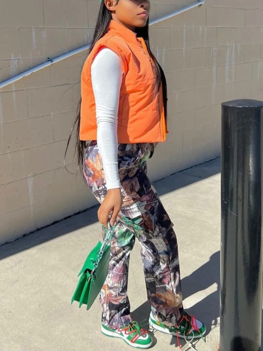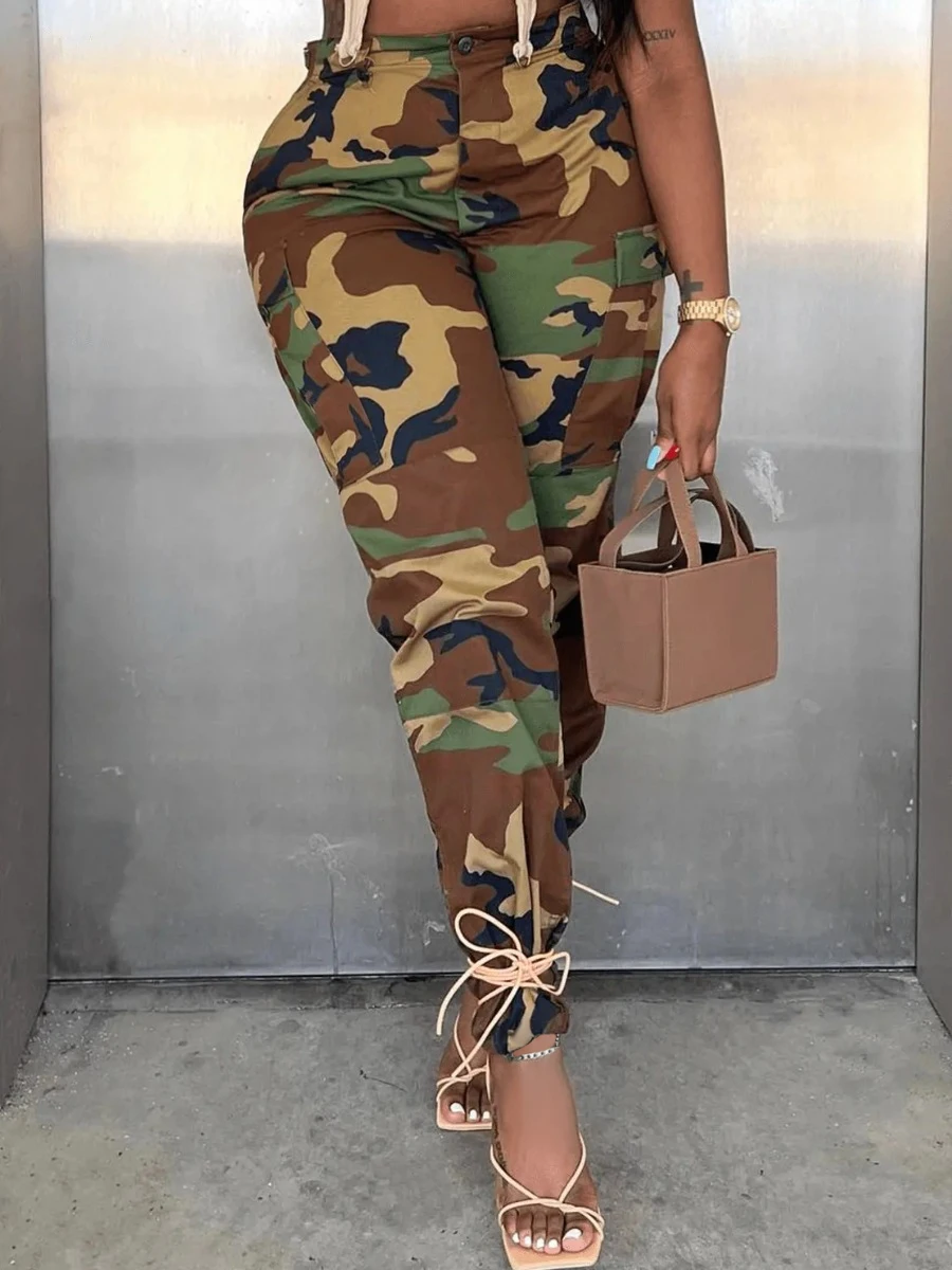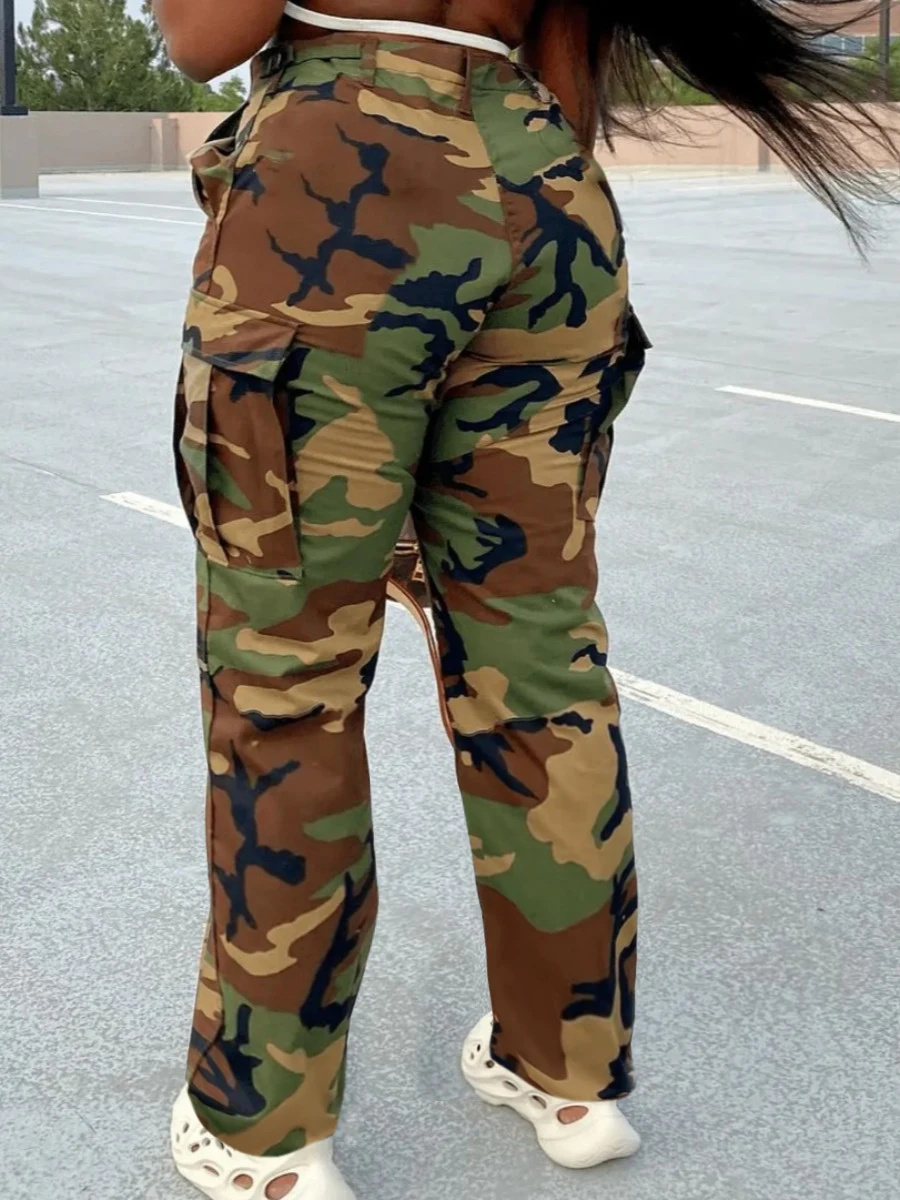 Mid Waist Print Cargo Pants