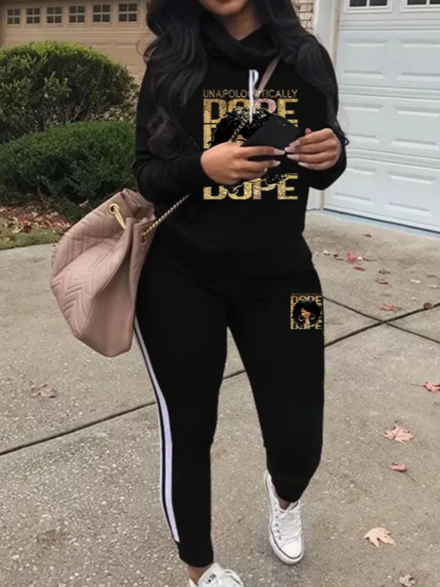 Plus Size Chain Print Drawstring Autumn Two Piece Pants Set