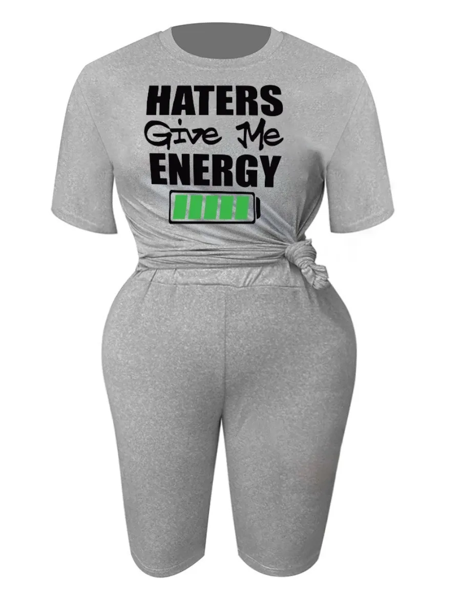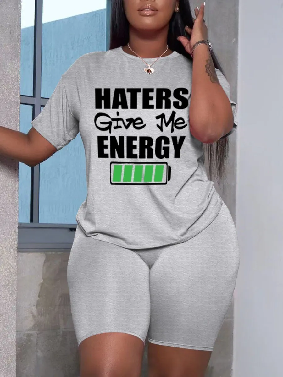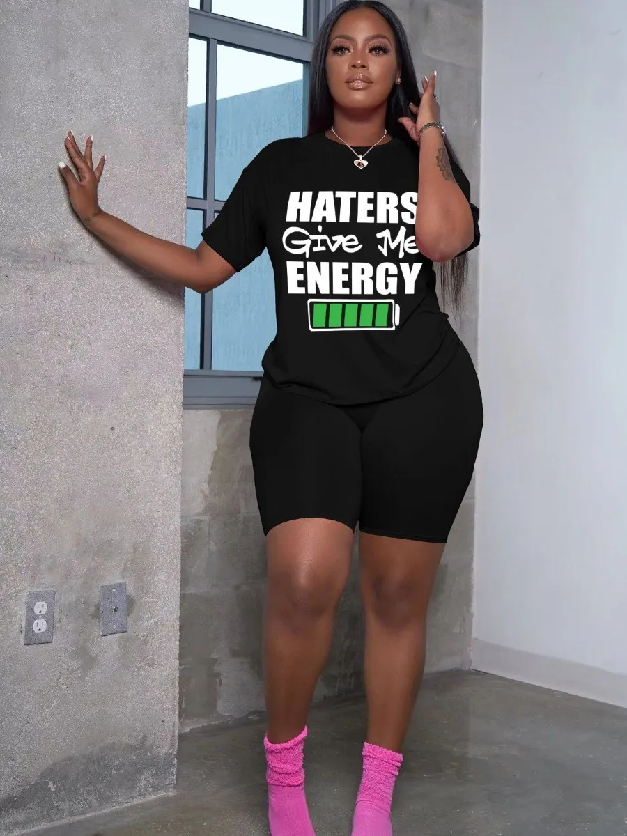 Plus Size Haters Give Me Energy Letter Print Shorts Set