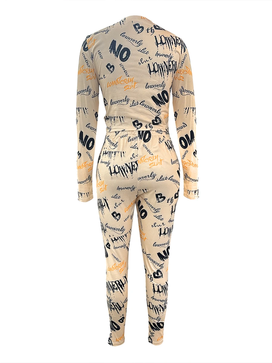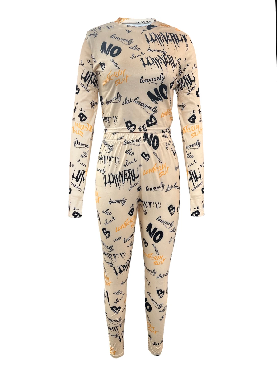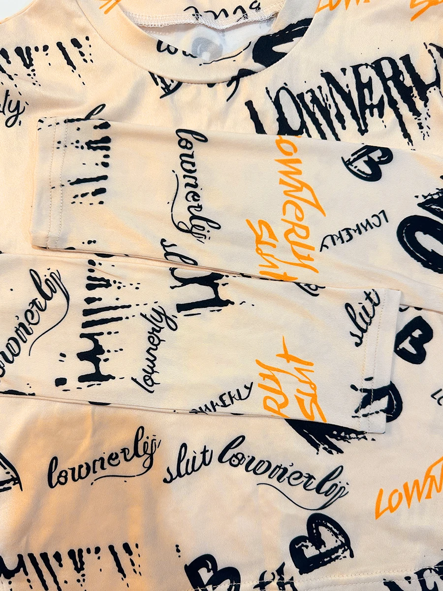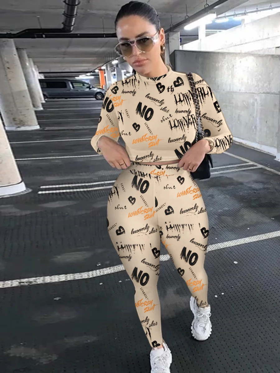 Two Piece Crop Top Letter Print Set