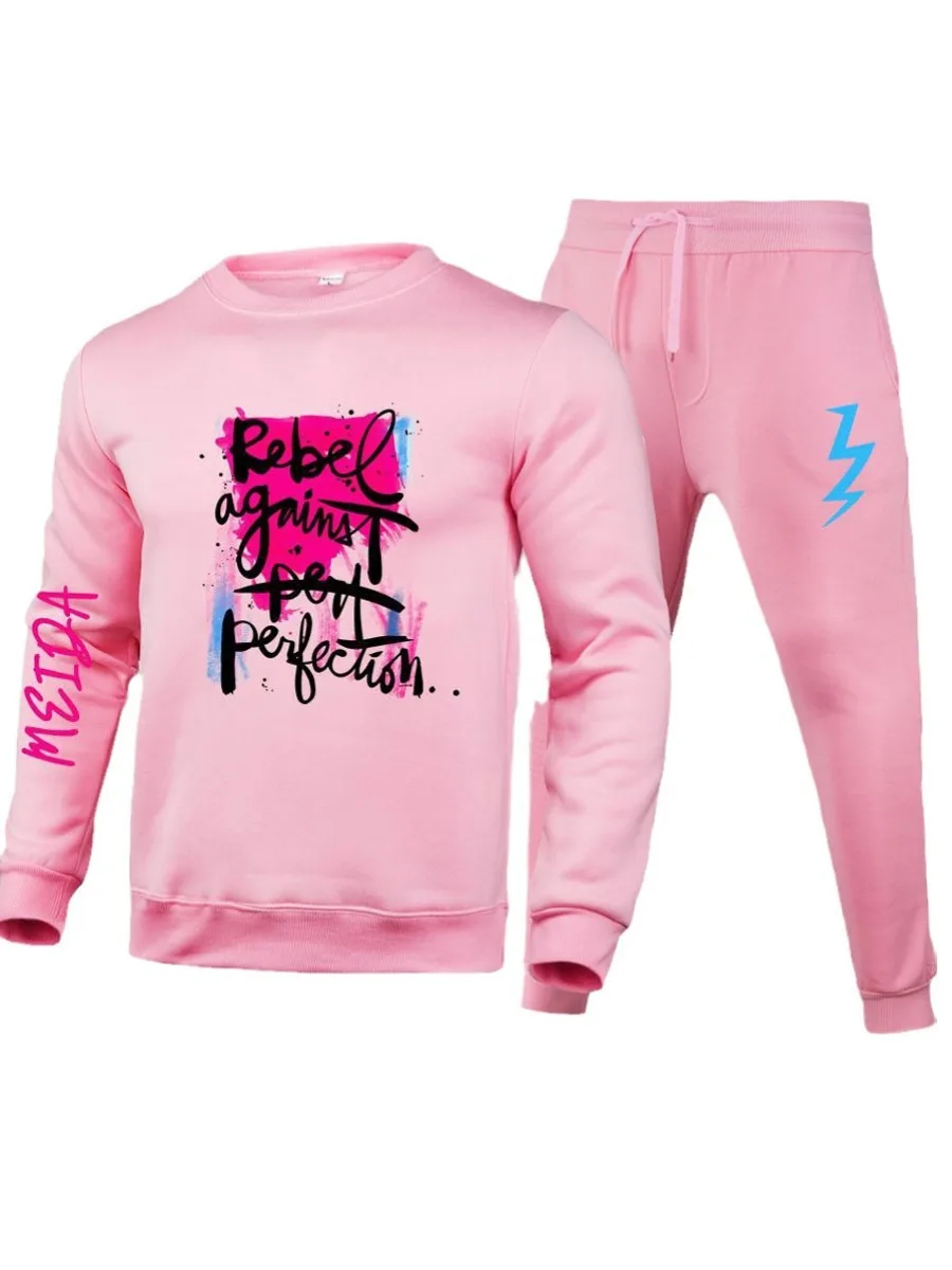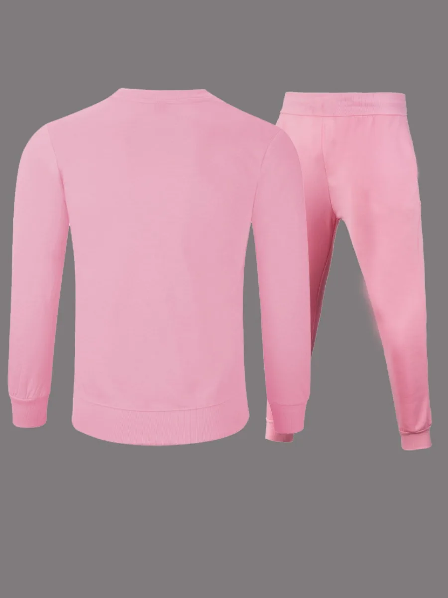 2pcs Letter Print Drawstring Long Sleeve Sweatsuit