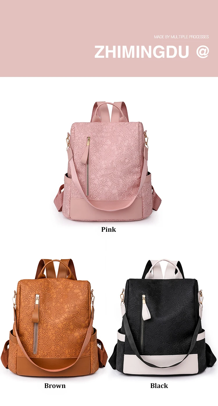 Soft Leather Stitching Anti-theft Fashion Backpack