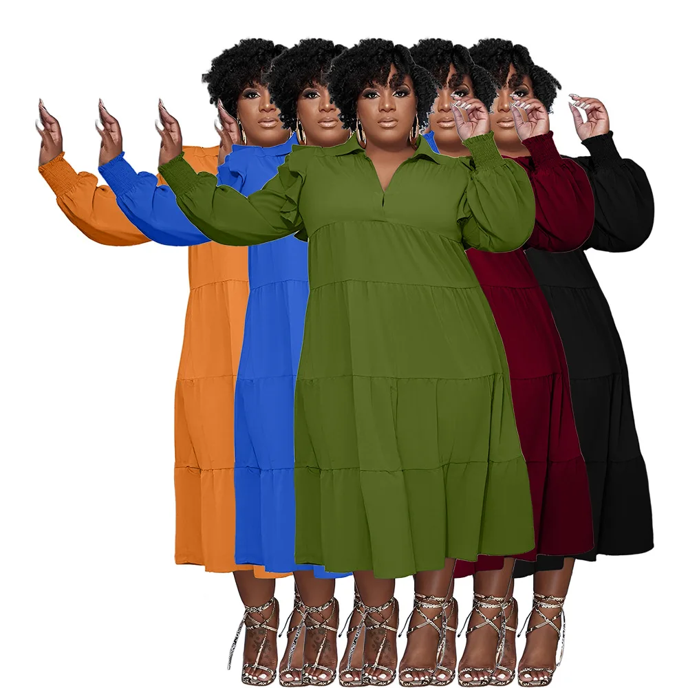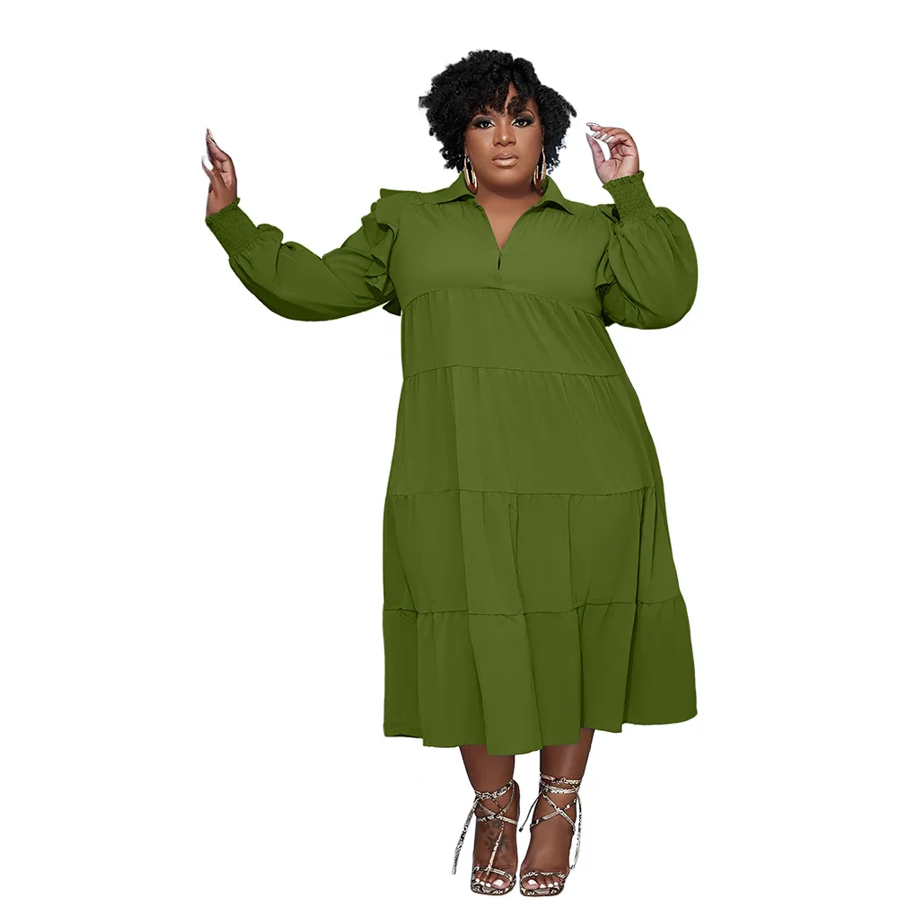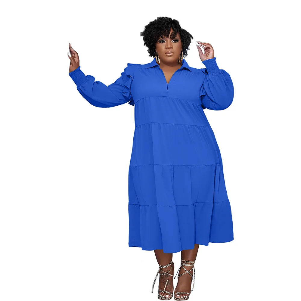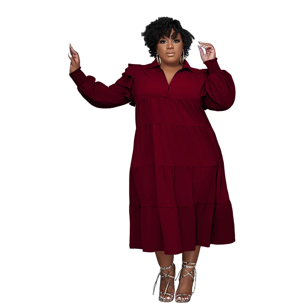 Plus Size Autumn Midi Patchwork Pleated Dress