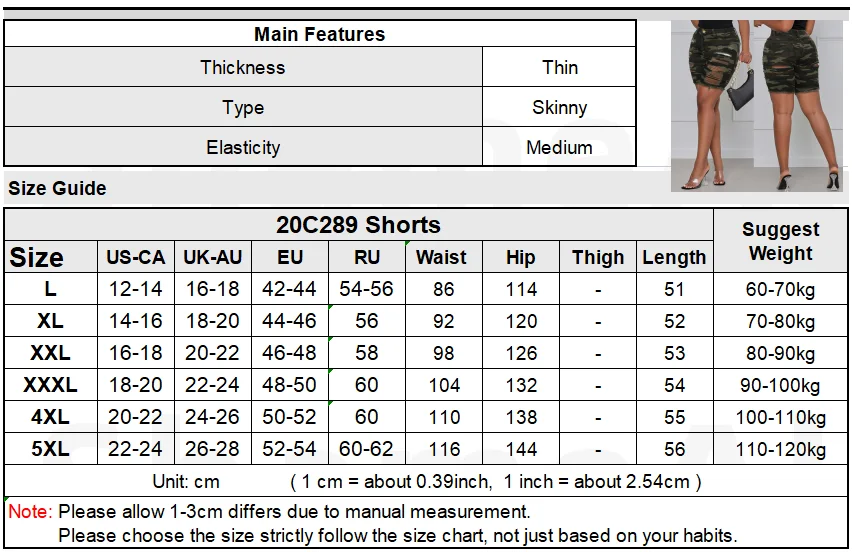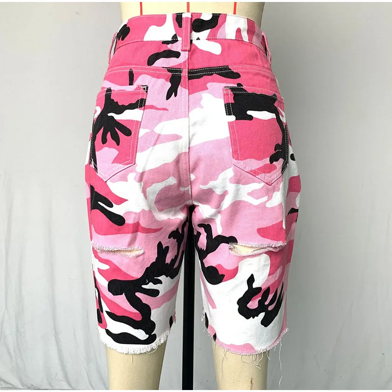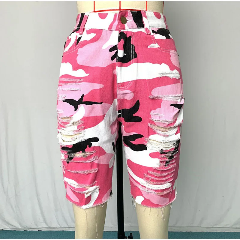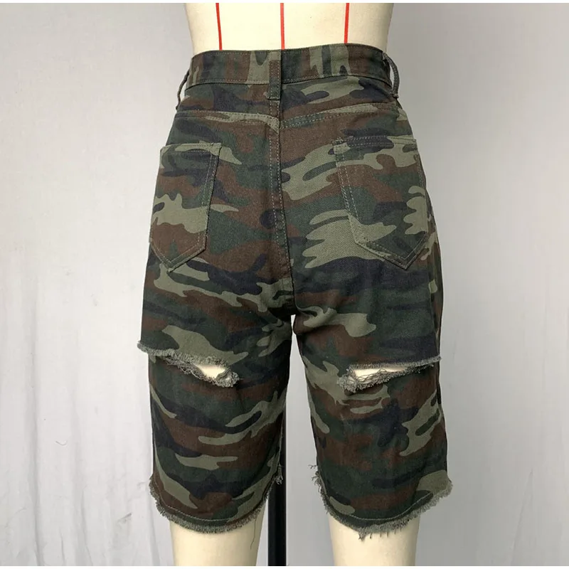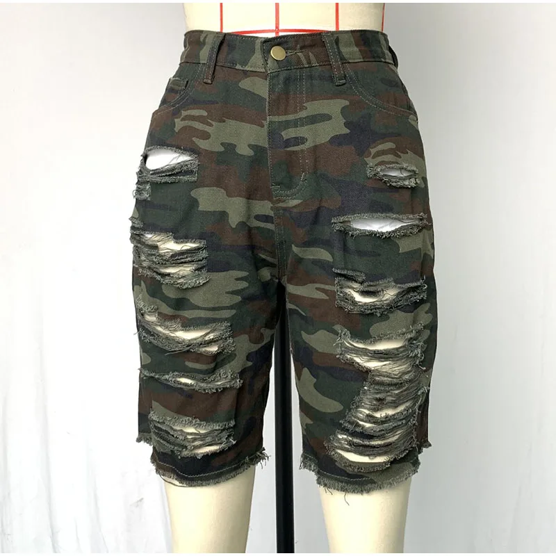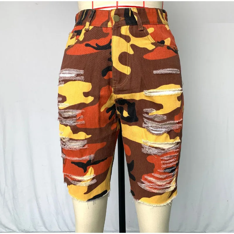 Plus Size Streetwear Ripped Skinny Camouflage Cutoff Jeans