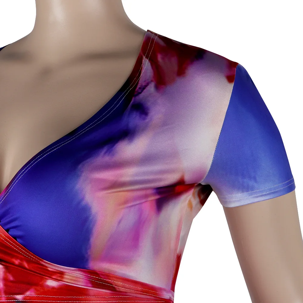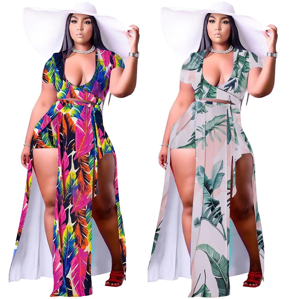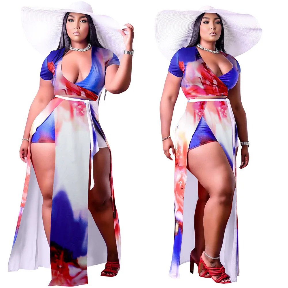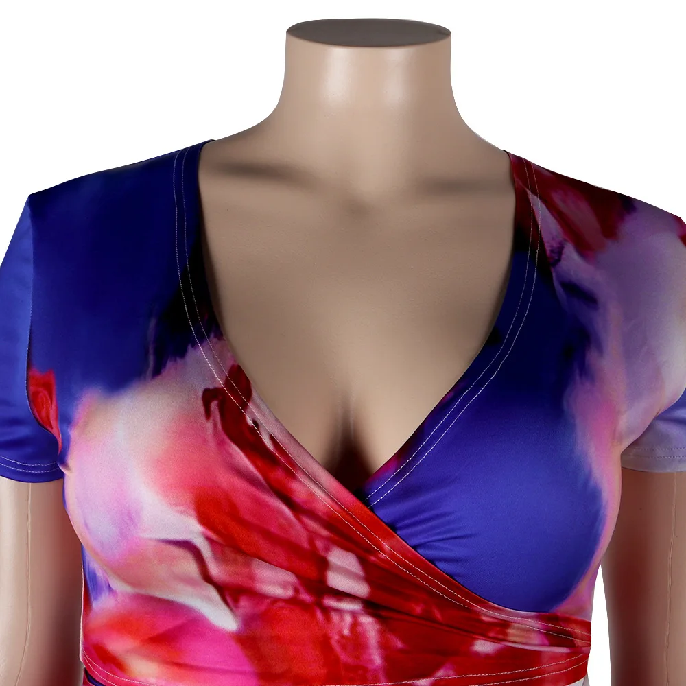 Plus Size Sexy V Collar Split Fork Rope Casual Two Piece Skirt Suit