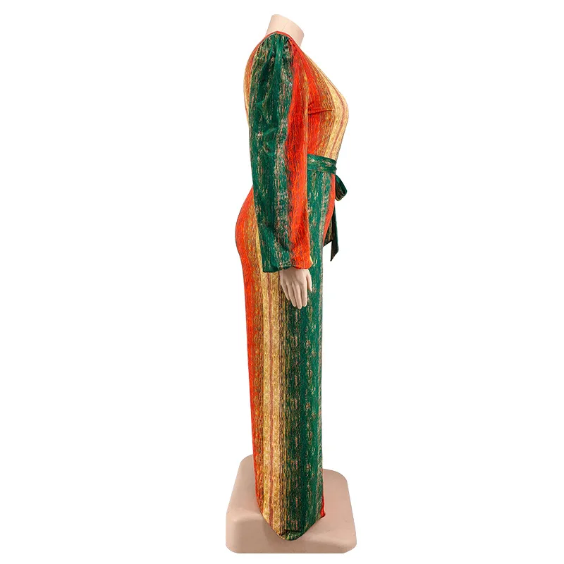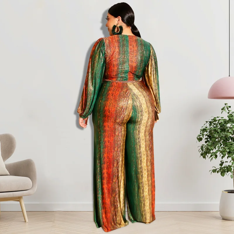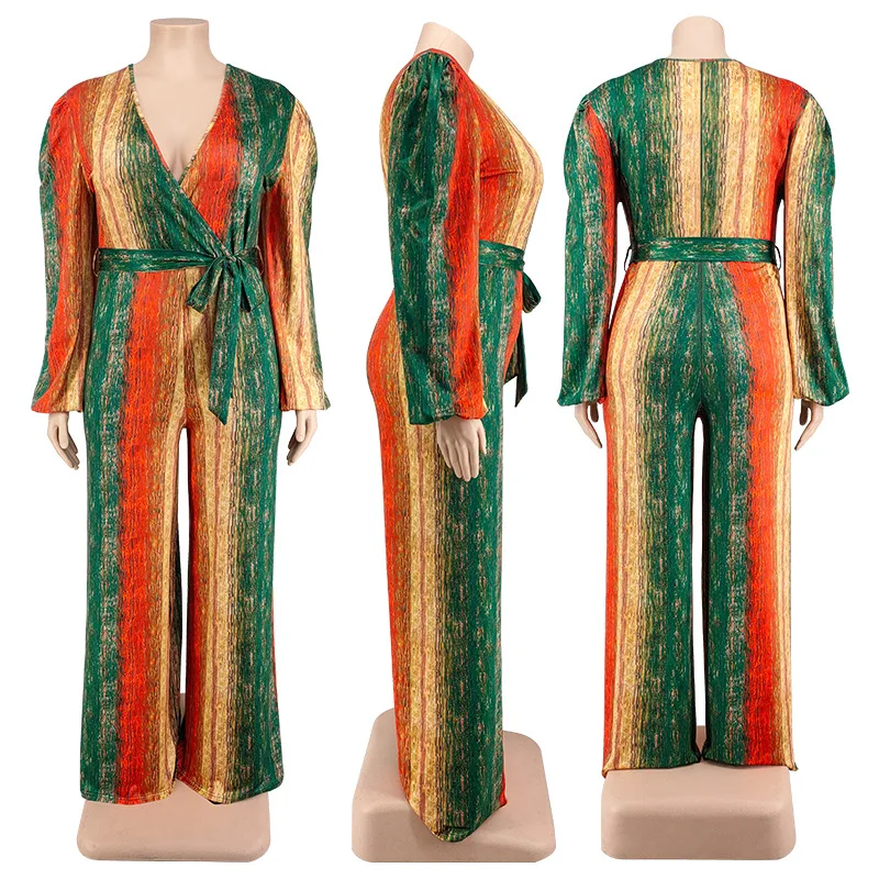 Plus Size Deep V-neck Patchwork Print Jumpsuit