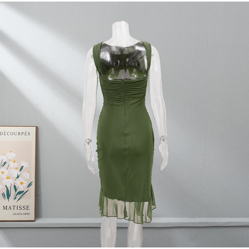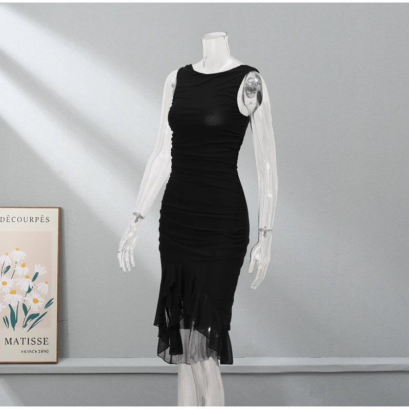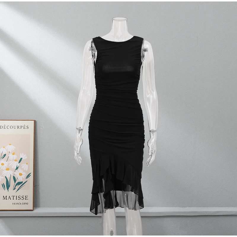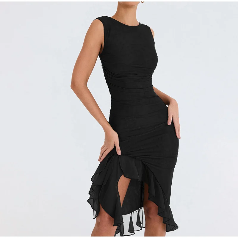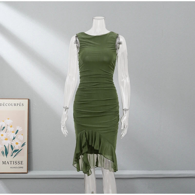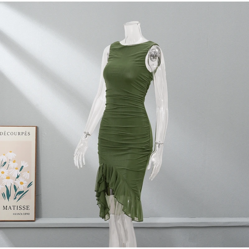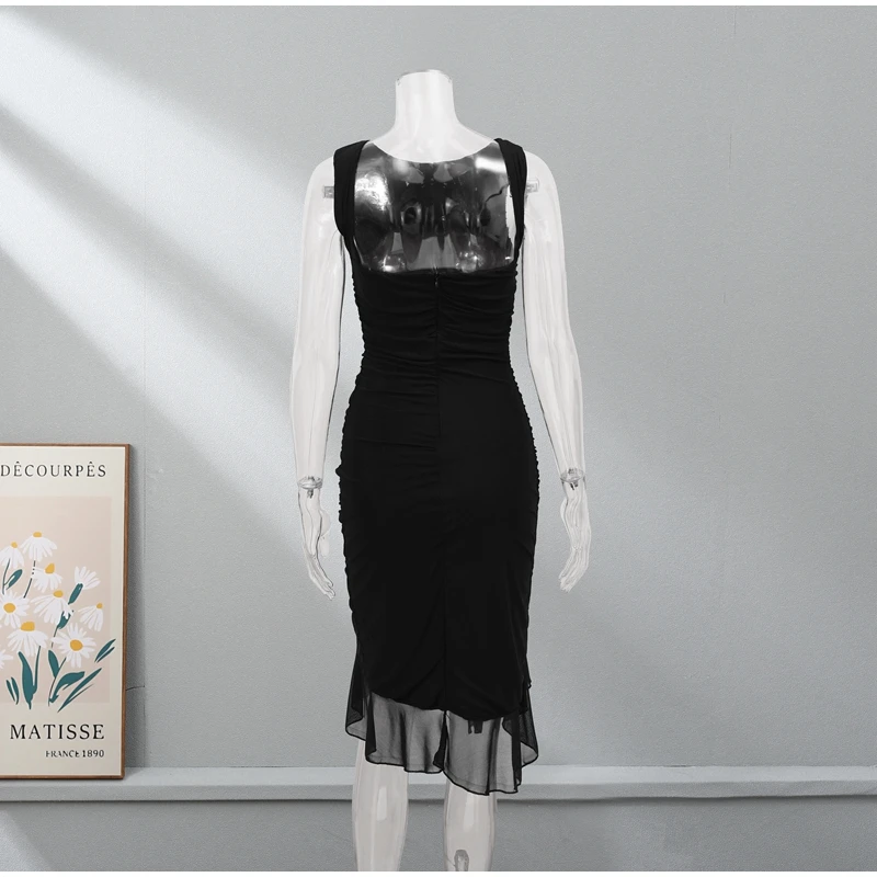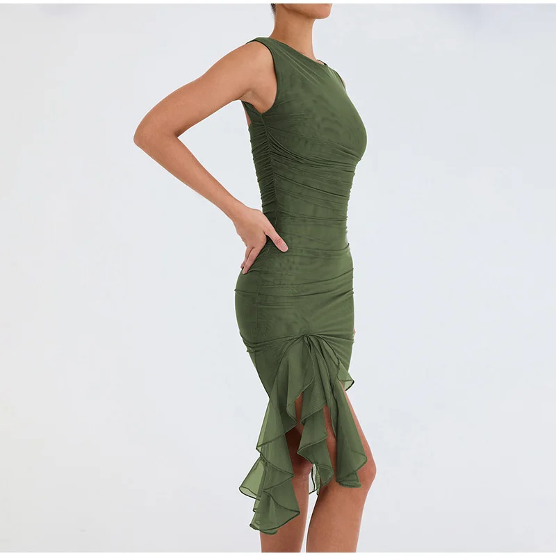 Sexy Irregular Ruffled Pleated Mid-length Dress