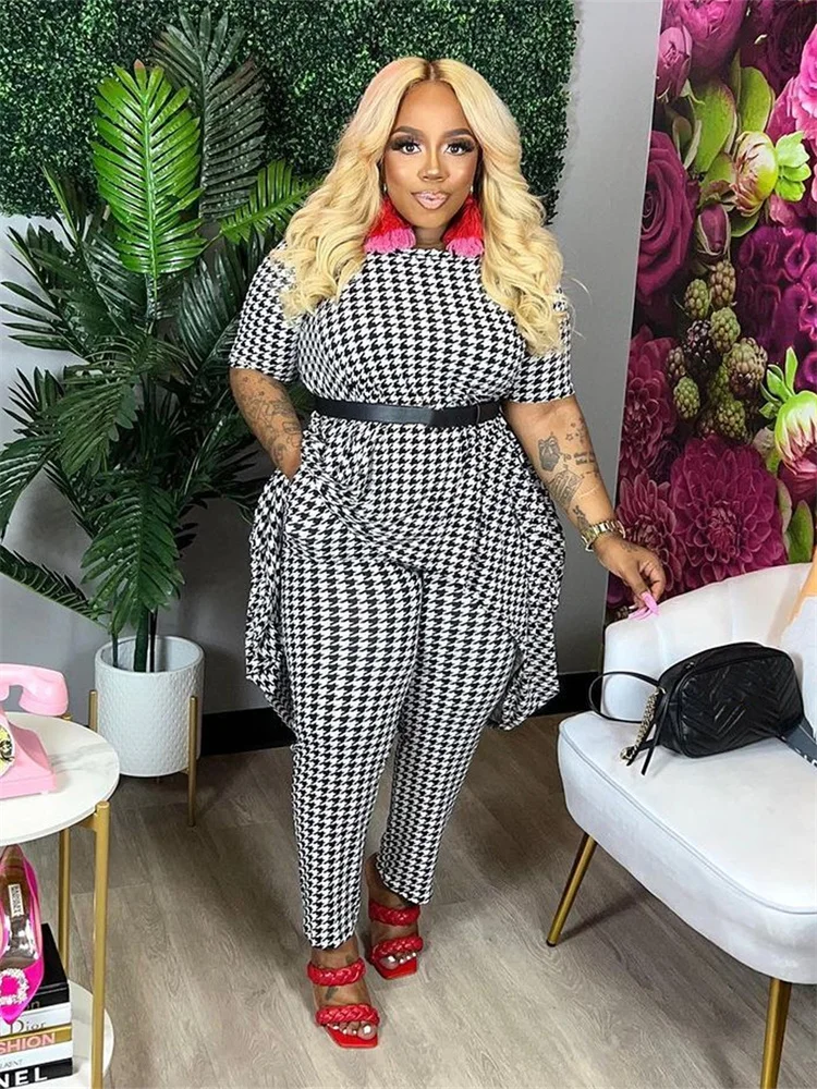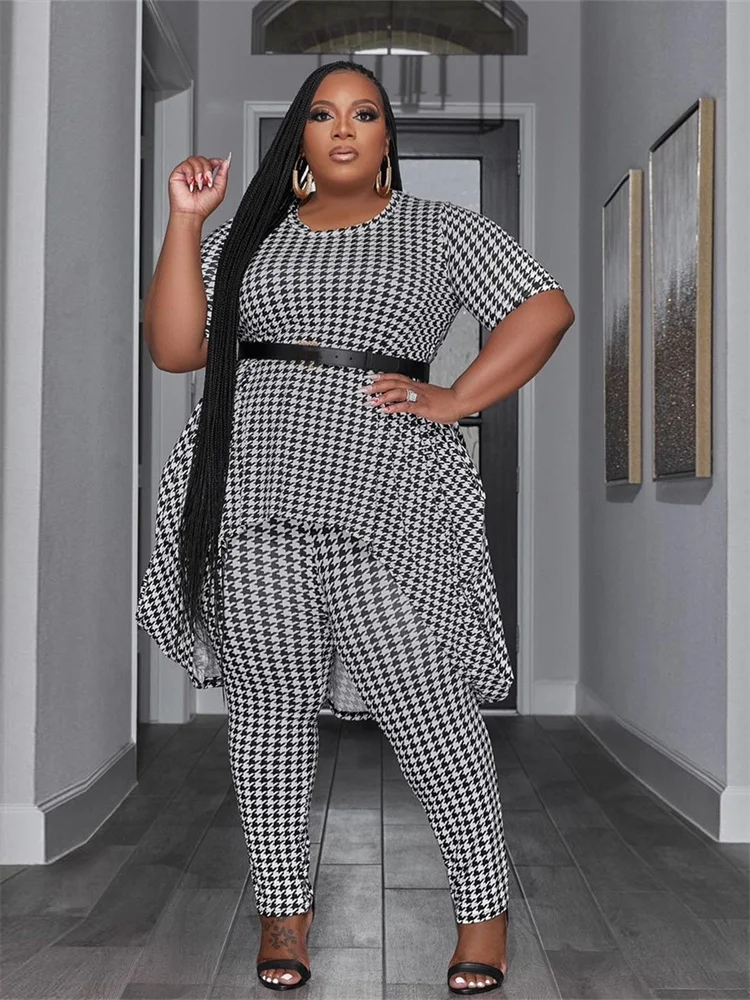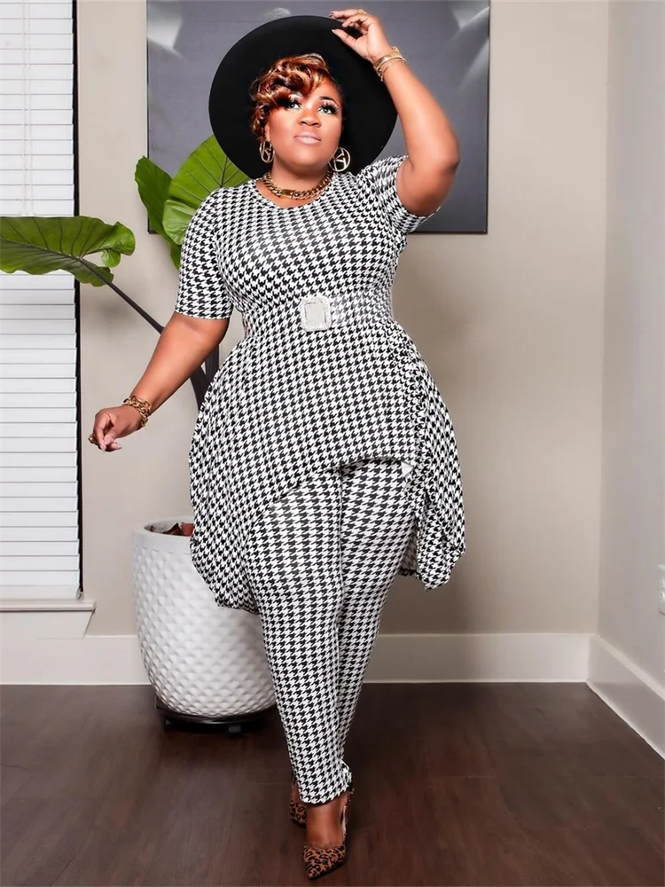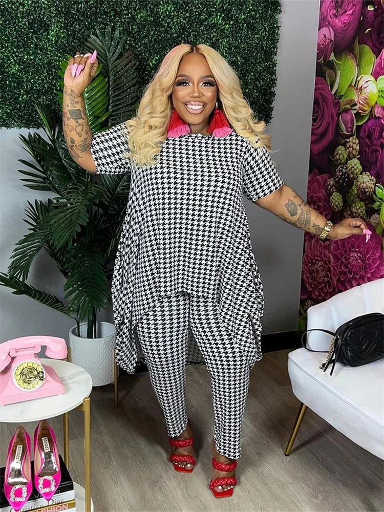 SOMO Plus Size Solid Long Top Leggings Two Piece Set