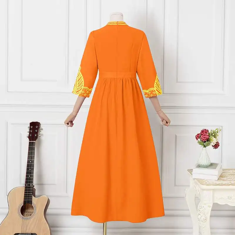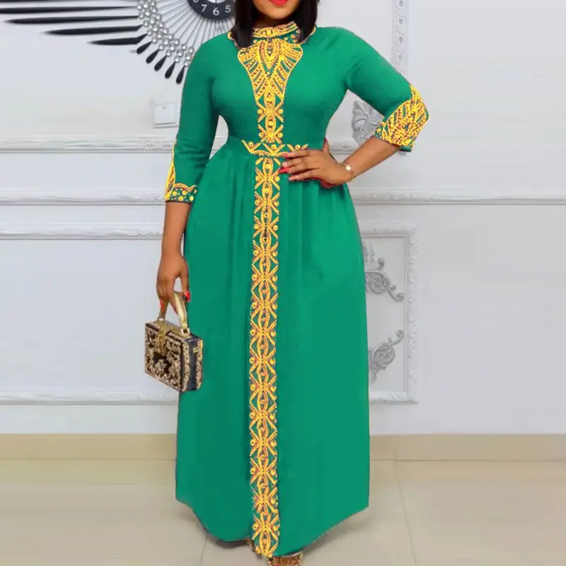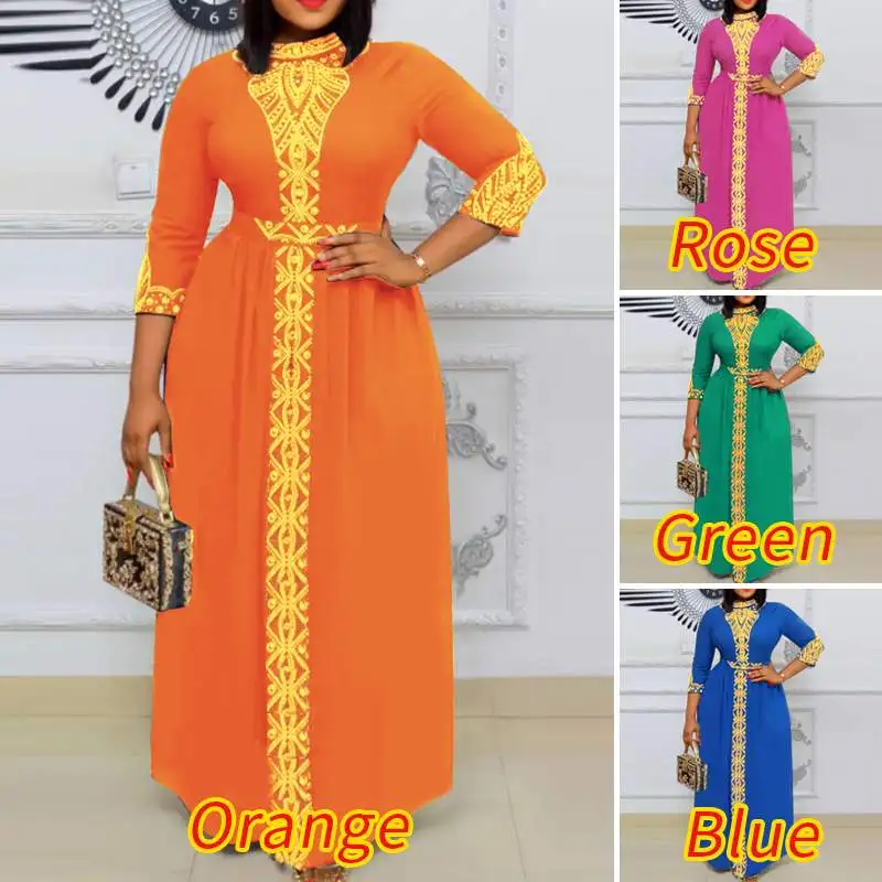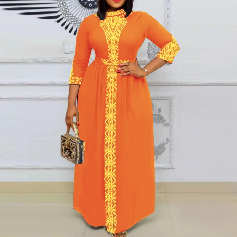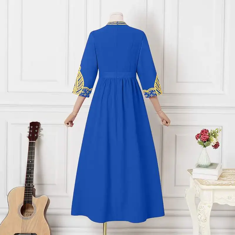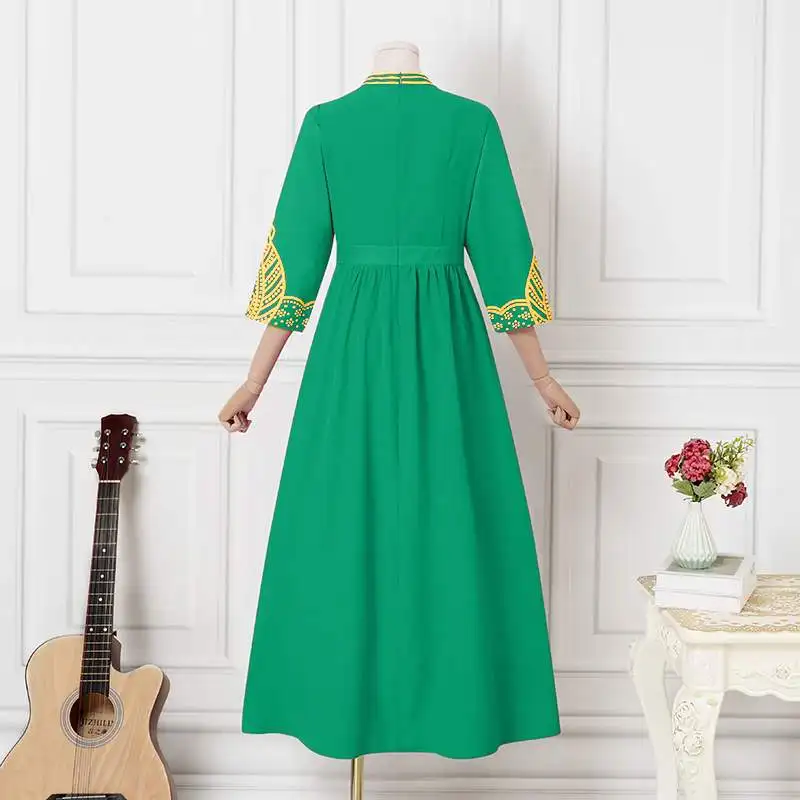 Loose A-Line 3/4 Sleeve Long Dress with Belt