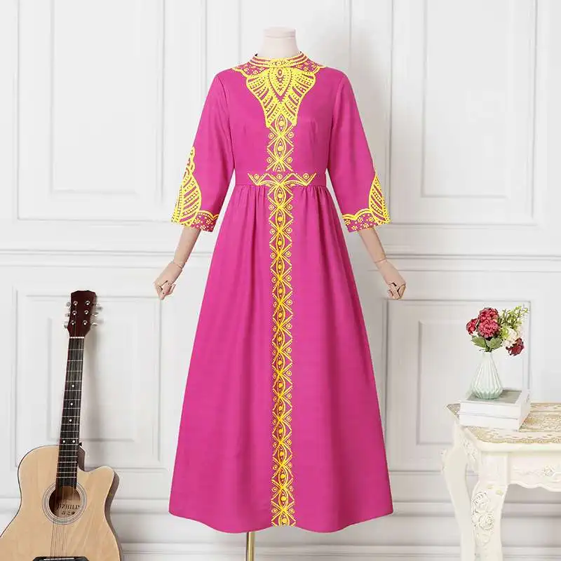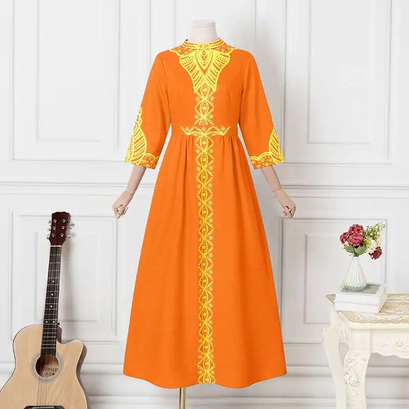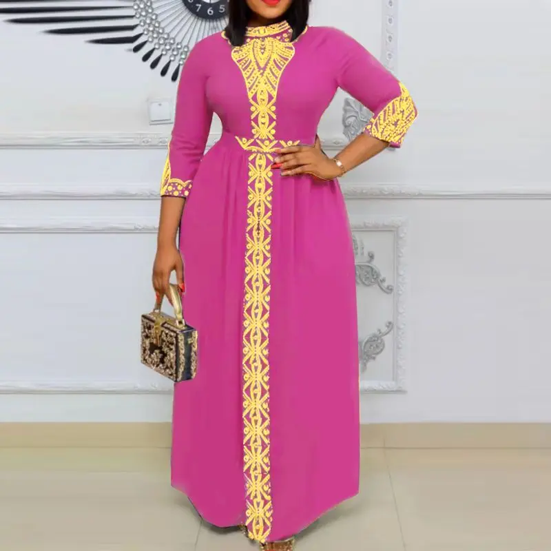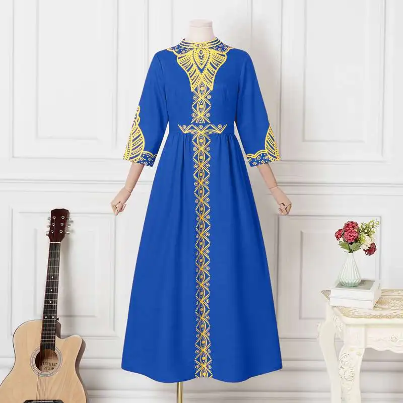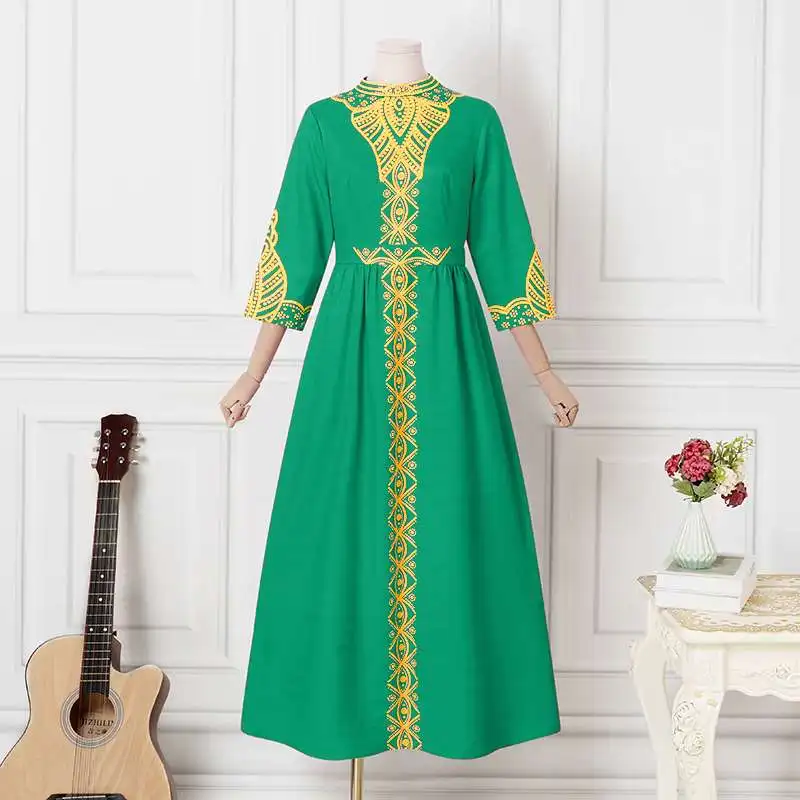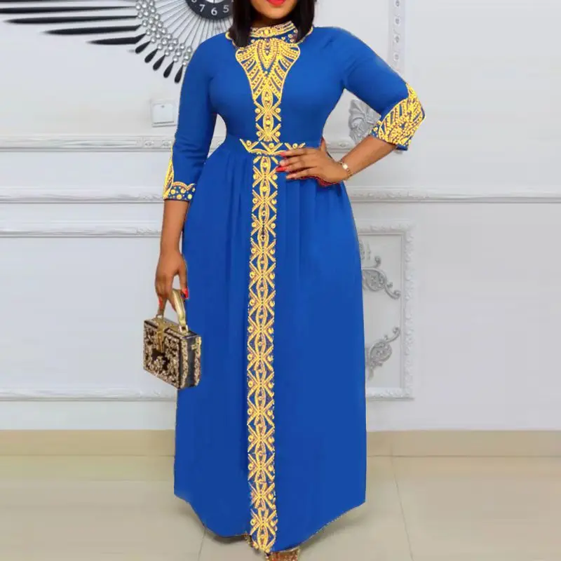 Loose A-Line 3/4 Sleeve Long Dress with Belt